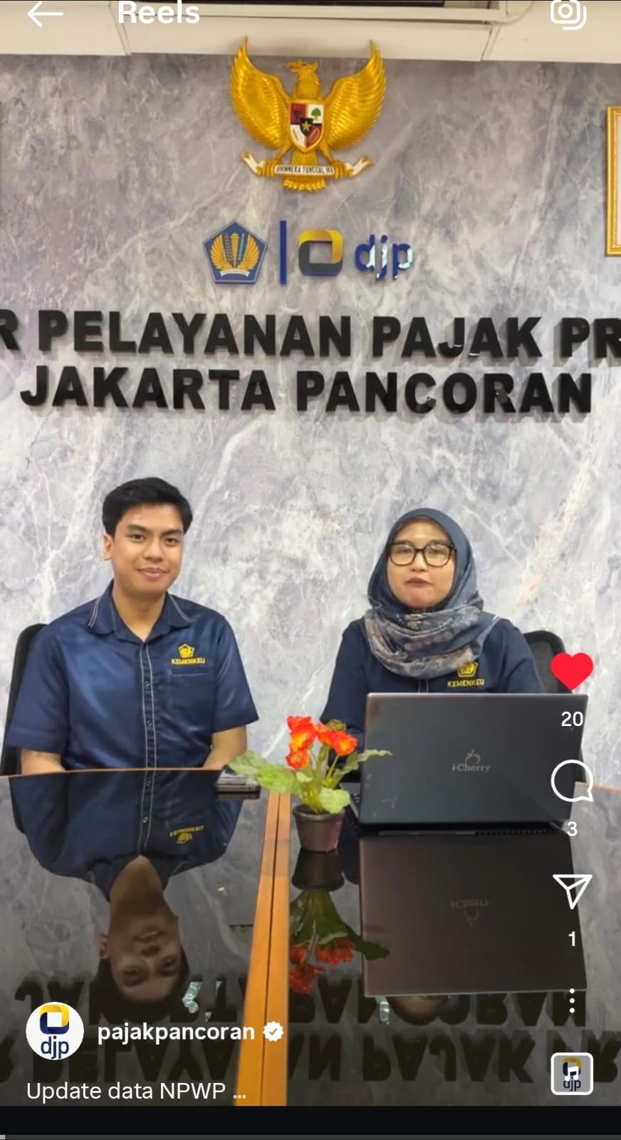 Bagi wajib pajak yang melewatkan live Instagram ini, dapat menyaksikannya melalui akun Instagram resmi Kantor Pelayanan Pajak (KPP) Pratama Jakarta Pancoran (@pajakpancoran).