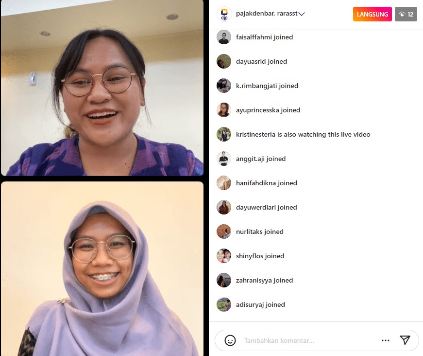 Instagram Live dipandu oleh Asisten Penyuluh Pajak Terampil KPP Pratama Denpasar Barat Ika Lastri Banjarnahor sebagai moderator dan Raras Supriyaningtiyas sebagai narasumber. Acara berlangsung selama kurang lebih 30 menit dan mengupas tuntas terkait Program Pengungkapan Sukarela.