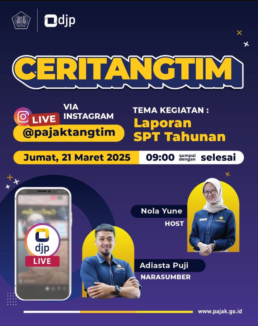 Kantor Pelayanan Pajak (KPP) Pratama Tangerang Timur gelar edukasi SPT Tahunan langsung lewat live Instagram @pajaktangtim di Ruang Podcast Ceritangtim KPP Pratama Tangerang Timur, Kota Tangerang (Jumat, 21/3).
