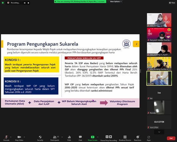 Penyuluh Pajak KPP Madya Dua Bandung sebagai narasumber mengusung tema Program Pengungkapan Sukarela (PPS) dan Surat Keterangan Bebas (SKB) Unifikasi.