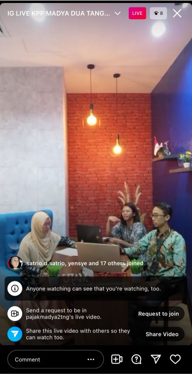Kantor Pelayanan Pajak (KPP) Madya Dua Tangerang mengadakan edukasi perpajakan melalui Instagram Live tentang Faktur Pajak sesuai dengan Peraturan Direktur Jenderal Pajak Nomor PER-03/PJ/2022. Kegiatan ini dilakukan di ruang penyuluhan KPP Madya Dua Tangerang, Kabupaten Tangerang (Selasa, 10/5).