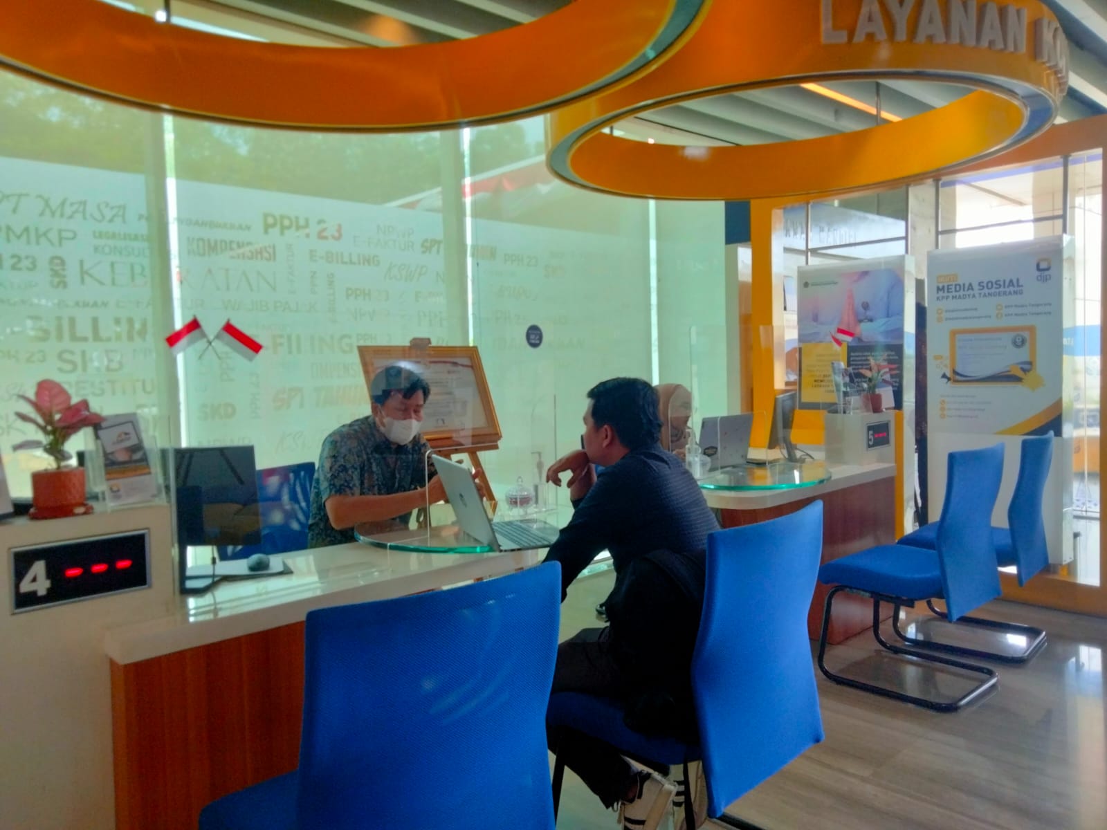 Penyuluh Pajak Kantor Pelayanan Pajak (KPP) Madya Tangerang memberikan asistensi kepada wajib pajak terkait penggunaan aplikasi e-Faktur. Kegiatan asistensi ini dilakukan langsung di ruang helpdesk Tempat Pelayanan Terpadu (TPT) KPP Madya Tangerang, Gedung Menara Top Food, Alam Sutera, Jalan Jalur Sutera Barat No.3, RT.003/RW.006, Panunggangan Timur, Pinang, Kota Tangerang, Banten (Selasa, 3/10).