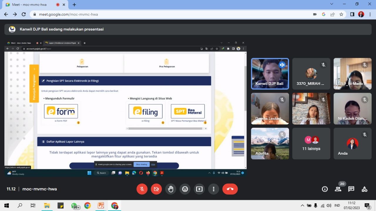 Jelang periode pelaporan Surat Pemberitahuan (SPT) Tahunan, Kantor Wilayah Direktorat Jenderal Pajak (Kanwil DJP) Bali memberikan pelatihan teknis cara mengisi formulir Surat Pemberitahuan (SPT) Tahunan melalui e-Filing kepada Mahasiswa Universitas Pendidikan Nasional (UNDIKNAS) Denpasar melalui media daring di Denpasar (Selasa, 7/2).
