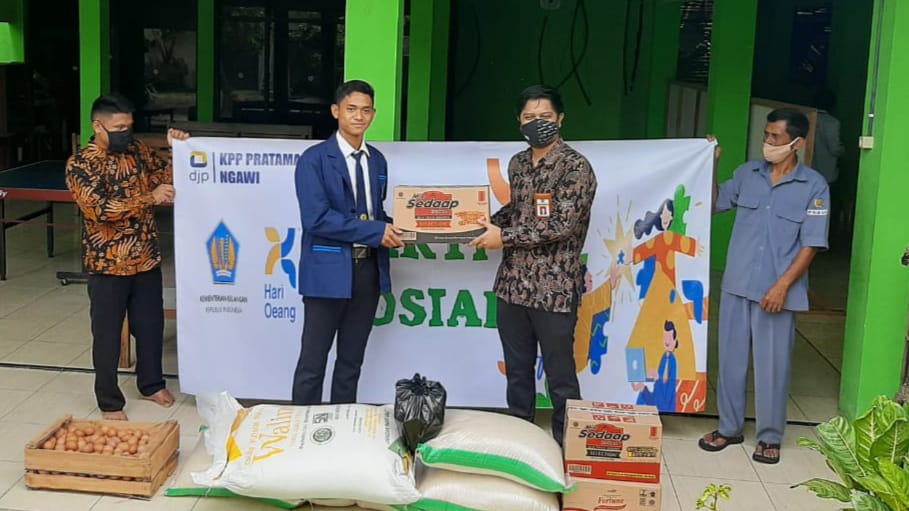 Kantor Pelayanan Pajak (KPP) Pratama Ngawi menggelar kegiatan bakti sosial dalam dalam rangka memperingati Hari Oeang Republik Indonesia (HORI) ke-74 di Ngawi (Selasa, 27/10). Kegiatan bakti sosial dilaksanakan di dua tempat, pertama di KPP Pratama Ngawi dengan menyerahkan bantuan kepada pegawai pemerintah non pegawai negeri. Kemudian acara yang kedua di Panti Asuhan Muhammadiyah Ngawi. Acara berlangsung dengan menerapkan protokol kesehatan Covid-19.