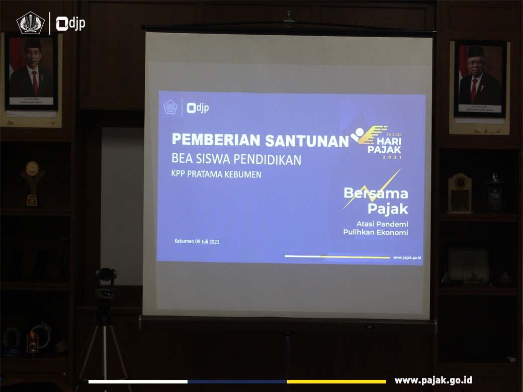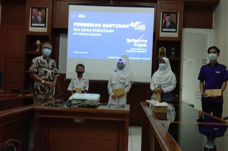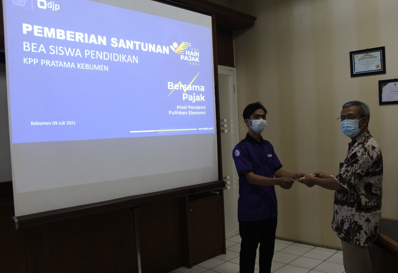 Kantor Pelayanan Pajak (KPP) Pratama Kebumen memberikan santunan beasiswa pendidikan sebagai rangkaian Peringatan Hari Pajak 2021 di Kebumen (Jumat, 9/7). Santunan beasiswa pendidikan diberikan kepada empat puluh putra-putri Pegawai Pemerintah Non Pegawai Negeri (PPNPN) KPP Pratama Kebumen.