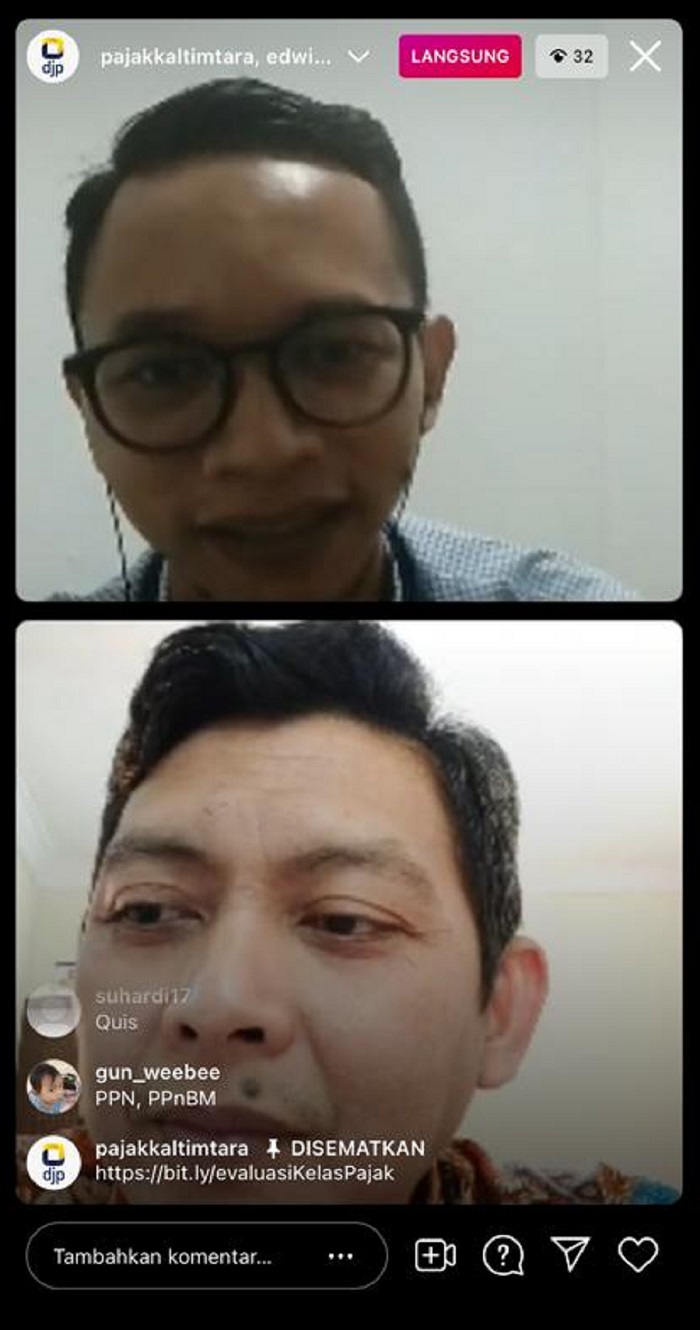 Kanwil DJP Kalimantan Timur dan Utara (Kaltimtara) melaksanakan sosialisasi pengenalan arti pajak pada masyarakat melalui siaran langsung di akun Instagram @pajakkaltimtara (Kamis, 20/5).