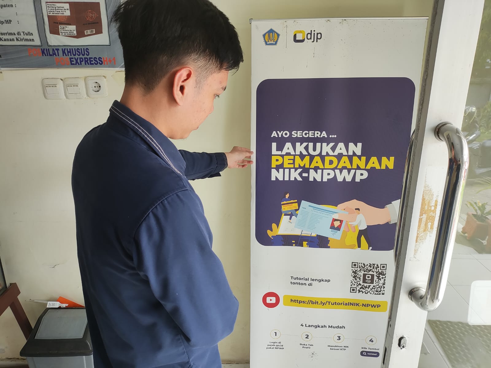 Petugas KP2KP Enrekang Kadek dan Syahfatras melakukan kunjungan ke Kantor Pos Enrekang dalam rangka memberikan imbauan pemadanan NIK-NPWP. Hal ini dilatarbelakangi oleh masih terdapat wajib pajak di Kabupaten Enrekang yang belum melakukan pemadanan NIK-NPWP. Imbauan dilakukan oleh Petugas KP2KP Enrekang dengan metode langsung melalui interaksi aktif kepada wajib pajak yang sedang mengunjungi Kantor Pos dan metode tidak langsung melalui pemasangan banner pemadanan NIK-NPWP.