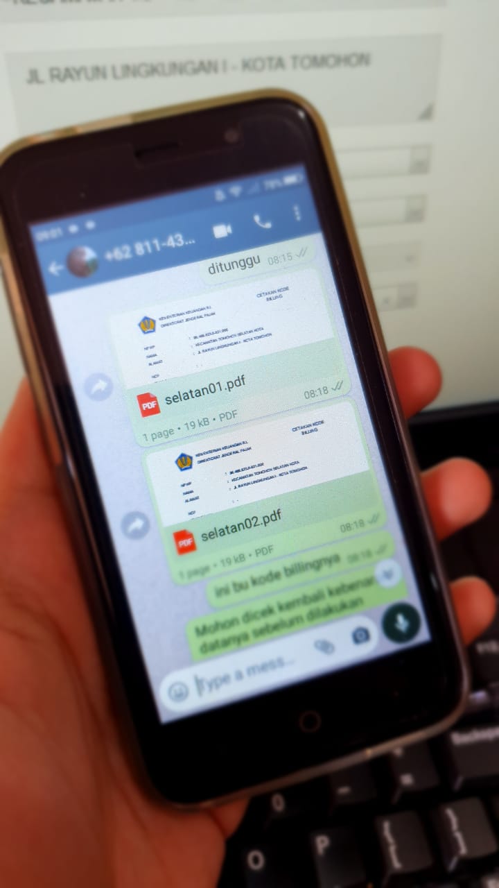 Kantor Pelayanan, Penyuluhan, dan Konsultasi Perpajakan (KP2KP) Tomohon menyediakan saluran komunikasi berupa WhatsApp untuk mempermudah wajib pajak dalam memperoleh layanan perpajakan di Kota Tomohon (Rabu,1/9). Wajib pajak yang berkonsultasi atau sekedar meminta kode billing akan dilayani secara online oleh pegawai yang bertugas di loket Tempat Pelayanan terpadu (TPT) KP2KP Tomohon.