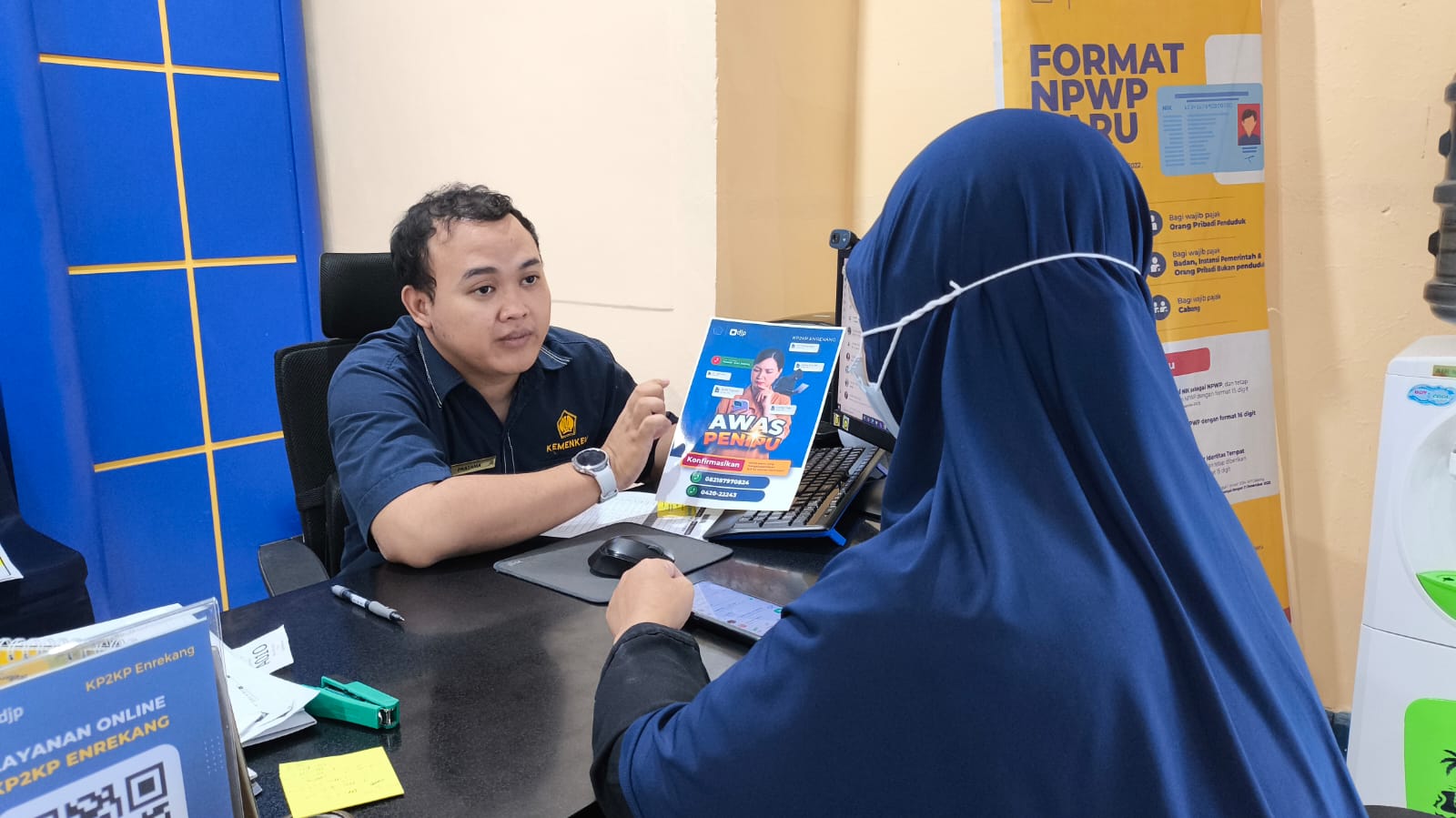 Kantor Pelayanan, Penyuluhan, dan Konsultasi Perpajakan (KP2KP) Enrekang memberikan imbauan kepada seluruh wajib pajak di Kabupaten Enrekang untuk tidak sembarangan mengunduh aplikasi M-Pajak dari sumber yang tidak resmi di Tempat Pelayanan Terpadu (TPT) KP2KP Enrekang, Kabupaten Enrekang (Rabu, 21/5).