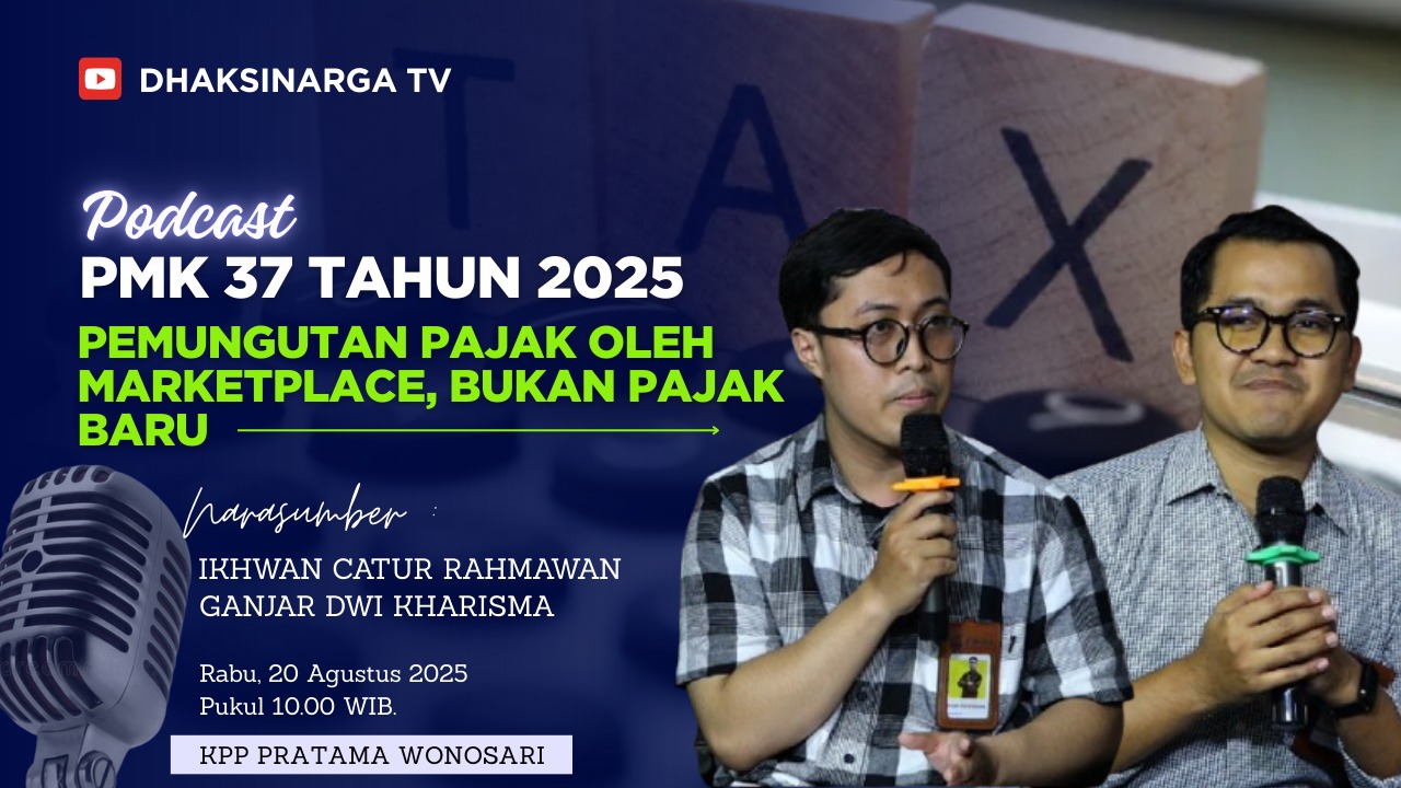 Ganjar Dwi Kharisma dan Ikhwan Catur Rahmawan, Penyuluh Pajak KPP Pratama Wonosari, menyosialisasikan Peraturan Menteri Keuangan (PMK) Nomor 37 Tahun 2025 tentang Pemungutan Pajak oleh Marketplace melalui siaran podcast bersama Abi (pembawa acara Radio Swara Dhaksinarga) di kantor Radio Swara Dhaksinarga, Jalan Melati, Purbosari, Wonosari, Kabupaten Gunungkidul (Rabu, 20/8).