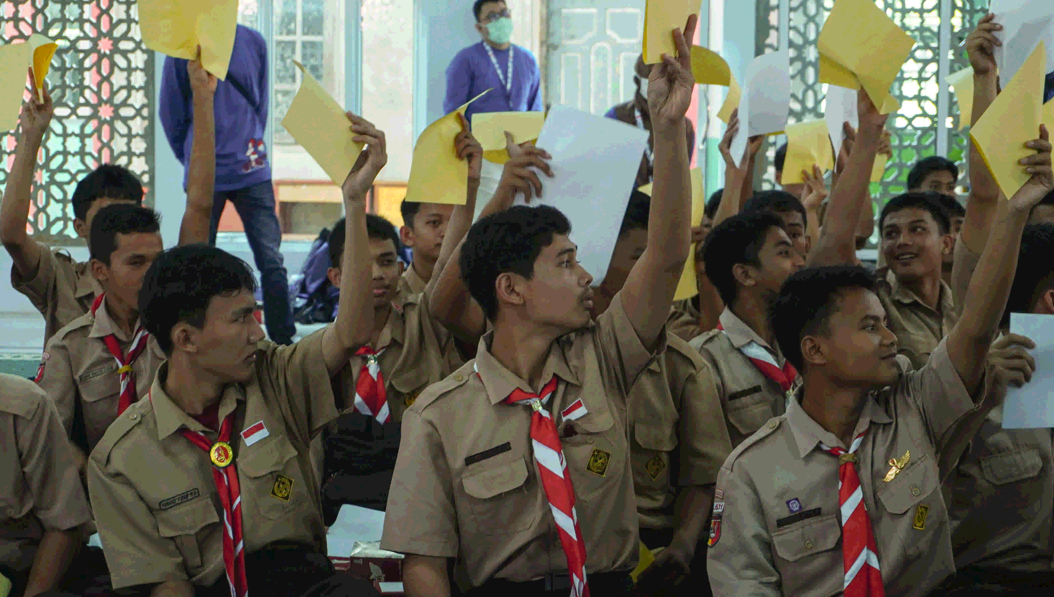 Sesi dilanjutkan dengan permainan “Ranking 1”, di mana para siswa diuji lewat pertanyaan benar-salah, menciptakan momen penuh tawa dan ketegangan. Puncak kemeriahan terjadi saat permainan tim digelar. Dalam tantangan bola dan silinder, setiap kelompok berupaya keras bekerja sama. Meski salah satu tim nyaris menang namun gagal di detik akhir, suasana tetap dipenuhi semangat sportivitas.