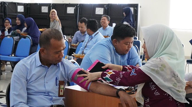 Kantor Pelayanan Pajak (KPP) Pratama Parepare melaksanakan kegiatan donor darah dalam rangka memeriahkan Hari Oeang ke-73 bersama seluruh unit vertikal Kementerian Keuangan di wilayah Kota Parepare bertempat di aula KPP Pratama Parepare (Rabu, 24/10).