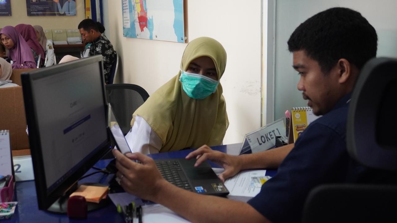 Kantor Pelayanan, Penyuluhan, dan Konsultasi Perpajakan (KP2KP) Sidrap menerima kunjungan dari wajib pajak yang hendak mengajukan permohonan pendaftaran NPWP pribadi di loket Tempat Pelayanan Terpadu (TPT) KP2KP Sidrap, Kabupaten Sidenreng Rappang (Rabu, 30/04).