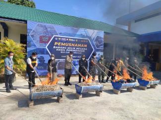 Kantor Pelayanan Pajak (KPP) Pratama Tanjung Redeb yang diwakili oleh Kepala Subbagian Umum dan Kepatuhan Internal Siswanti menghadiri kegiatan pemusnahan Barang Milik Negara (BMN) hasil penindakan berlokasi di Kantor Pengawasan dan Pelayanan Bea dan Cukai (KPPBC) Tipe Madya Pabean (TMP) B Tarakan, Jalan Yos Sudarso No. 1, Lingkas Ujung, Kota Tarakan, Kalimantan Utara (Kamis, 16/3).