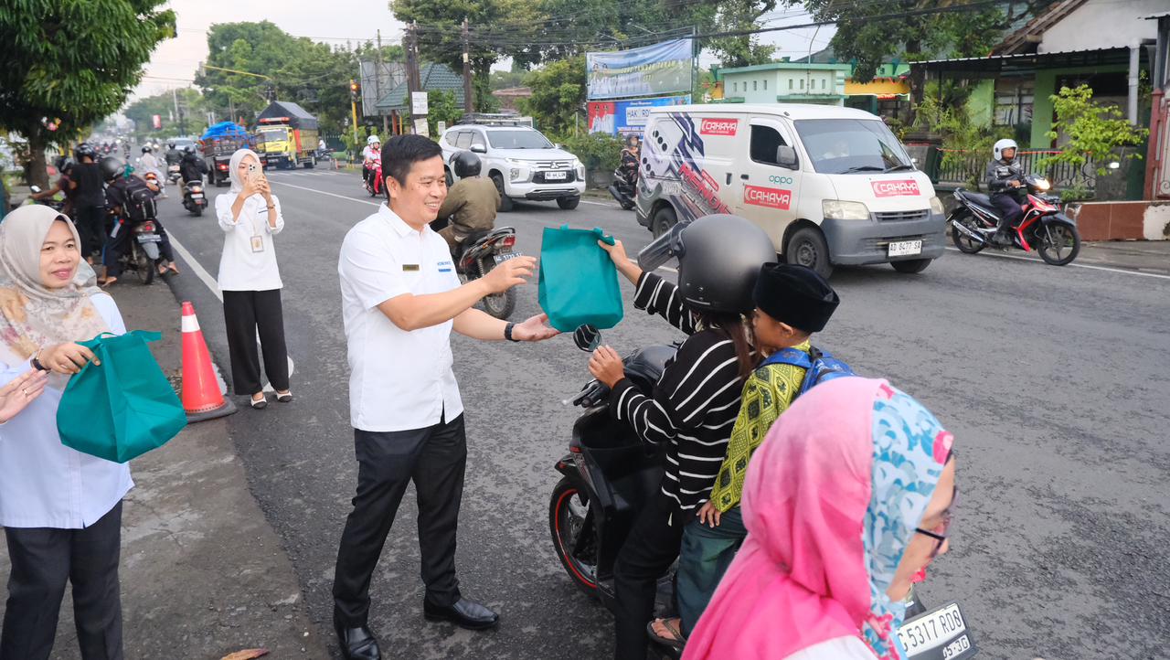 Kepala KPP Pratama Tulungagung, Efendi Pinem, terjun langsung membagikan takjil sekaligus menyapa masyarakat. Efendi menekankan pentingnya pendampingan bagi masyarakat di tengah transisi sistem baru ini.