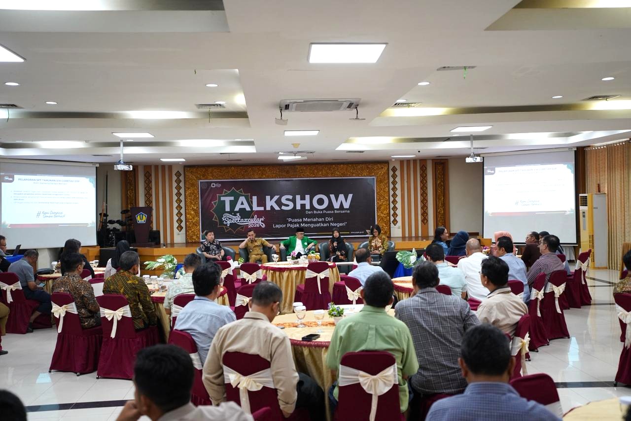 Sesi Talkshow Perpajakan menghadirkan tiga narasumber dari unsur pemerintah daerah, organisasi keagamaan, dan dunia usaha. Yossi Hervandi, Kepala Badan Pengelola Keuangan dan Aset Daerah (BPKAD) Provinsi Sumatera Selatan, menyampaikan bahwa penerimaan pajak berkontribusi langsung pada pembiayaan belanja daerah, mencakup pembangunan infrastruktur dan layanan publik di Provinsi Sumatera Selatan.