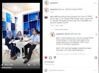 Funsional Penyuluh Pajak Kantor Wilayah (Kanwil) Direktorat Jenderal Pajak (DJP) Jawa Barat III mengulas kebijakan Nomor Induk Kependudukan (NIK) menjadi Nomor Pokok Wajib Pajak (NPWP) melalui Siaran langsung (live) Instagram dari akun resmi @pajakjabar3, Bogor (Rabu, 28/9).