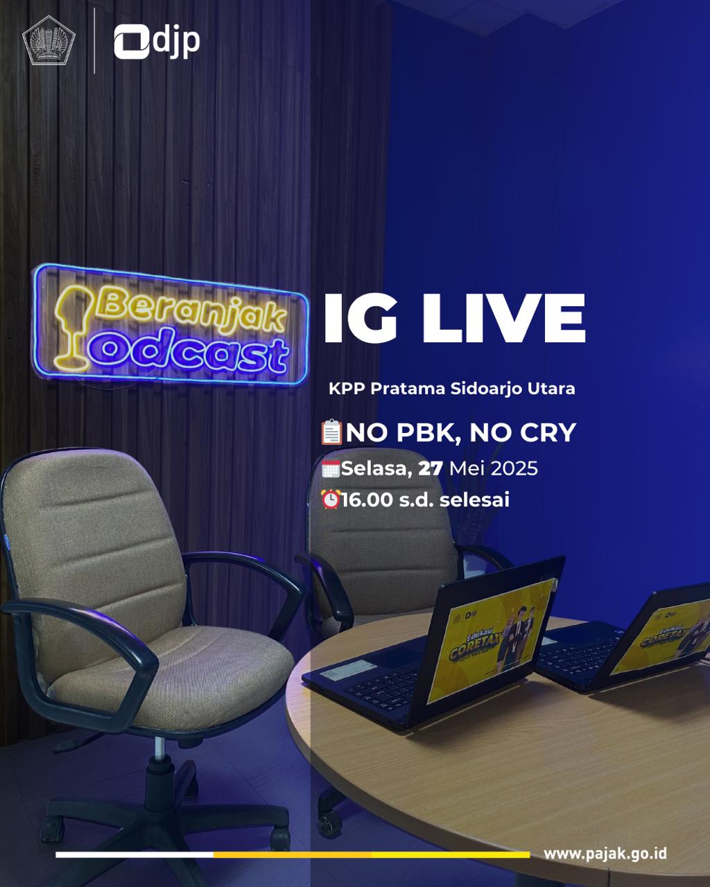 Kantor Pelayanan Pajak (KPP) Pratama Sidoarjo Utara kembali menyapa wajib pajak melalui siaran langsung Instagram bertajuk No PBK No Cry di akun resmi @pajaksdautara. Bertempat di Ruang Podcast KPP Pratama Sidoarjo Utara, siaran edukatif ini berlangsung selama 30 menit, mulai pukul 16.00 WIB (Selasa, 27/5).