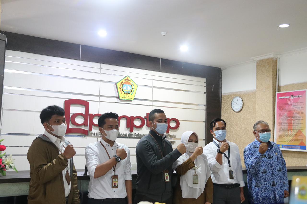 Pada kunjungan ini, Kepala Seksi Penjaminan Kualitas Data Afit Nanda Satriya, Kepala Seksi Pengawasan IV Arnold Wuriyadi dan perwakilan dari KPP Pratama TBK disambut baik oleh Plt. Sekretaris DPMPTSP Kabupaten Karimun Raja Mavia Rozza dan Kepala Seksi Kebijakan dan Penyuluhan Layanan Dinas R. Anom Bambang Dewantara dengan tetap memperhatikan protokol kesehatan Covid-19.