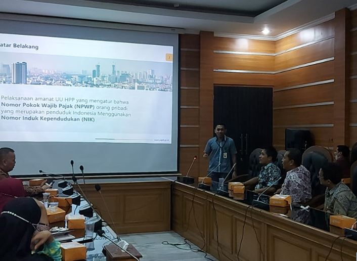 Kantor Pelayanan Pajak (KPP) Pratama Cibinong menyambangi Sekretariat Dewan Perwakilan Rakyat Daerah (DPRD) Kabupaten Bogor dalam rangka edukasi para Aparatur Sipil Negara (ASN) Sekretariat DPRD untuk memadankan data NIK menjadi NPWP, di Kabupaten Bogor (Kamis, 19/1). Kegiatan yang berlangsung di Ruang Rapat DPRD tersebut bertujuan untuk memberikan informasi tentang pemadanan data NIK dan NPWP.