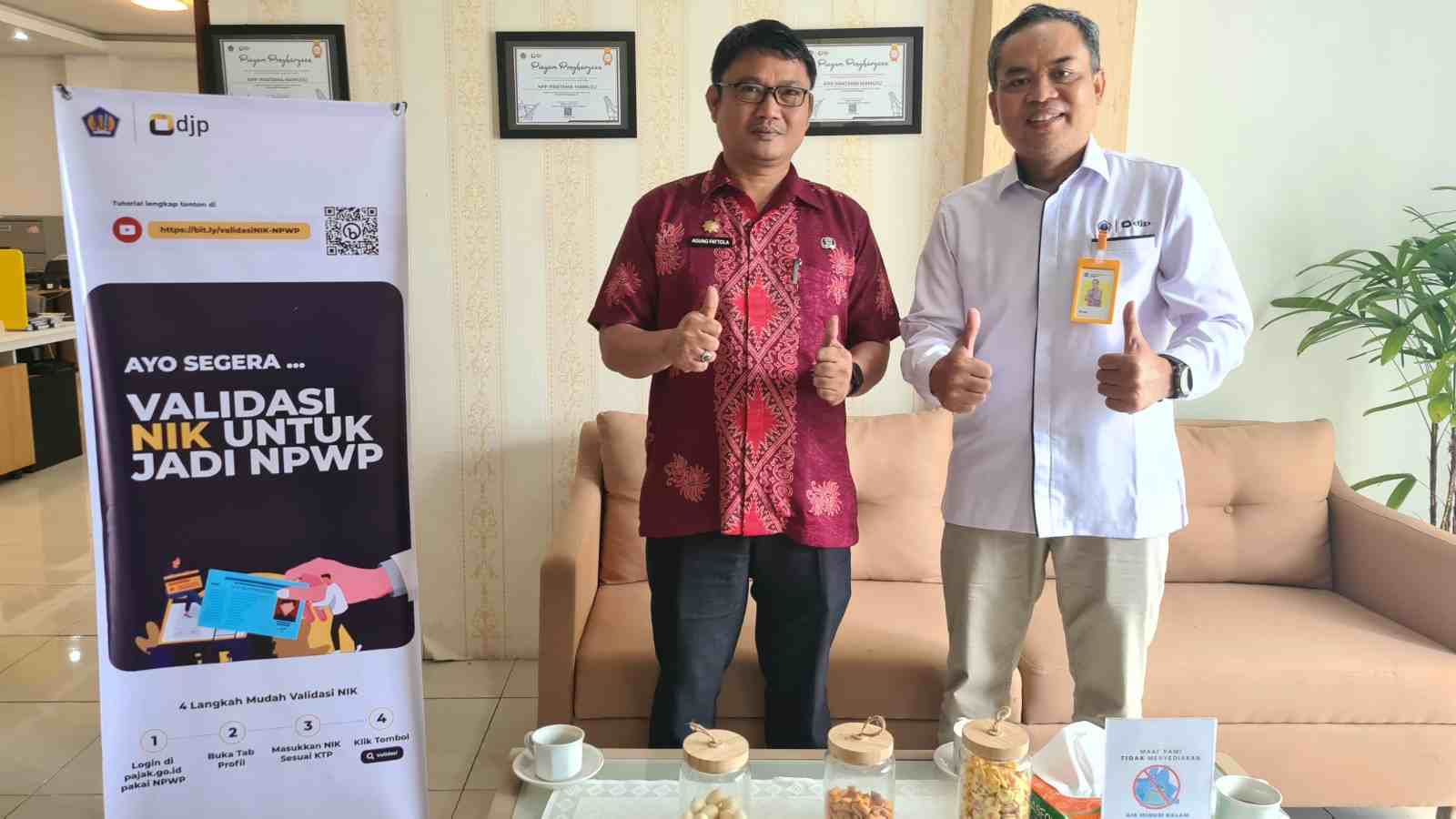 Kepala Dinas Kependudukan dan Pencatatan Sipil (Disdukcapil) Kabupaten Mamuju Agung Pattola melakukan kunjungan kerja ke Kantor Pelayanan Pajak (KPP) Pratama Mamuju dalam rangka berkoordinasi terkait kegiatan pemadanan Nomor Induk Kependudukan (NIK) sebagai Nomor Pokok Wajib Pajak (NPWP). Kunjungan kerja Kepala Dinas Dukcapil diterima langsung oleh Kepala KPP Pratama Mamuju Ihsan di Ruang Tamu Kepala KPP Pratama Mamuju, Jl Urip Sumoharjo No. 46, Karema, Mamuju, Sulawesi Barat (Kamis, 19/1).