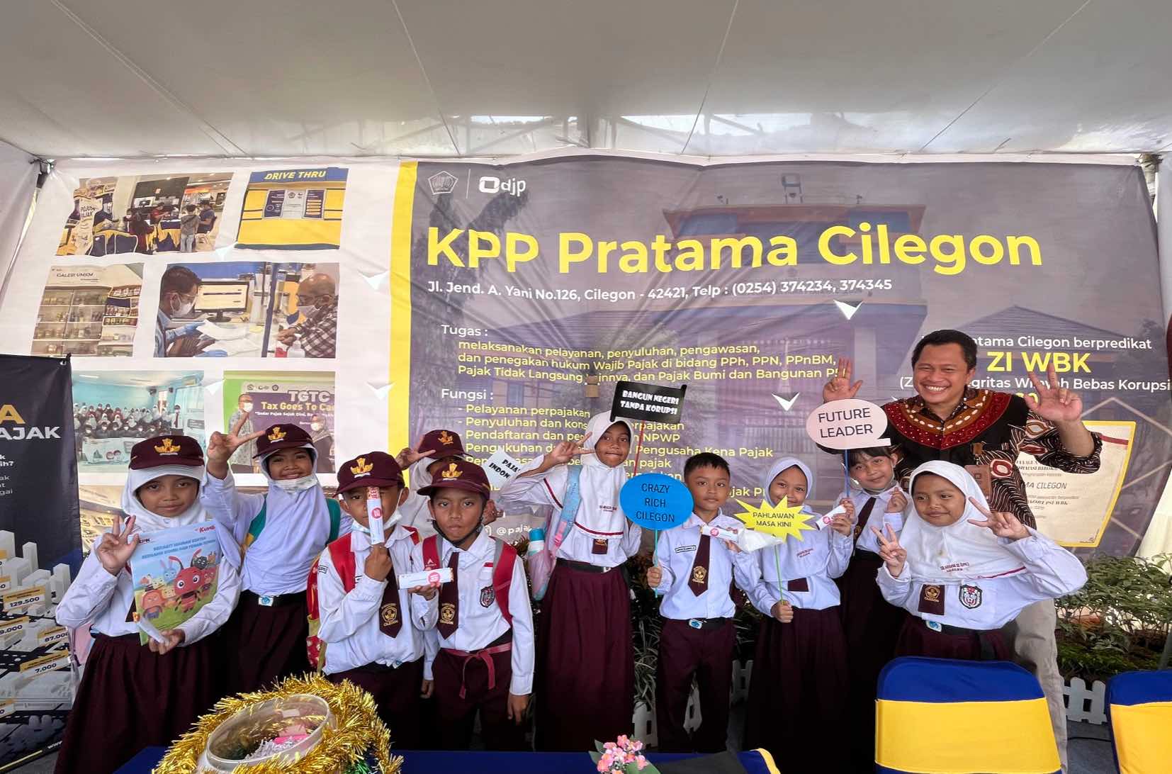 Kantor Pelayanan Pajak (KPP) Pratama Cilegon mengenalkan pajak kepada siswa-siswi SD sampai dengan SMA melalui games pajak dalam Kegiatan Roadshow Bus Komisi Pemberantasan Korupsi (KPK) Tahun 2022 di stand KPP Pratama Cilegon, Alun-Alun Kota Cilegon (Rabu, 5/10).