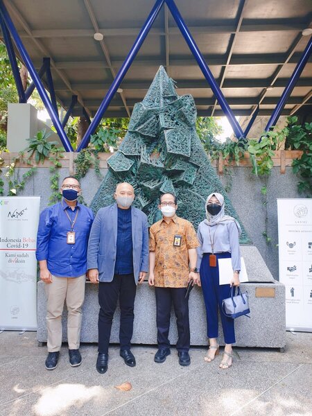 Kepala KPP Pratama Bandung Bojonagara Sony Sujati, Kepala Seksi Pengawasan I Aditya Wibisono beserta Account Repressentative (AR) Rani Nurulita melakukan kunjungan kerja ke lokasi usaha dan kediaman seniman terkenal I Nyoman Nuarta di kompleks Setraduta, Bandung, Jawa Barat (Kamis, 26/8).
