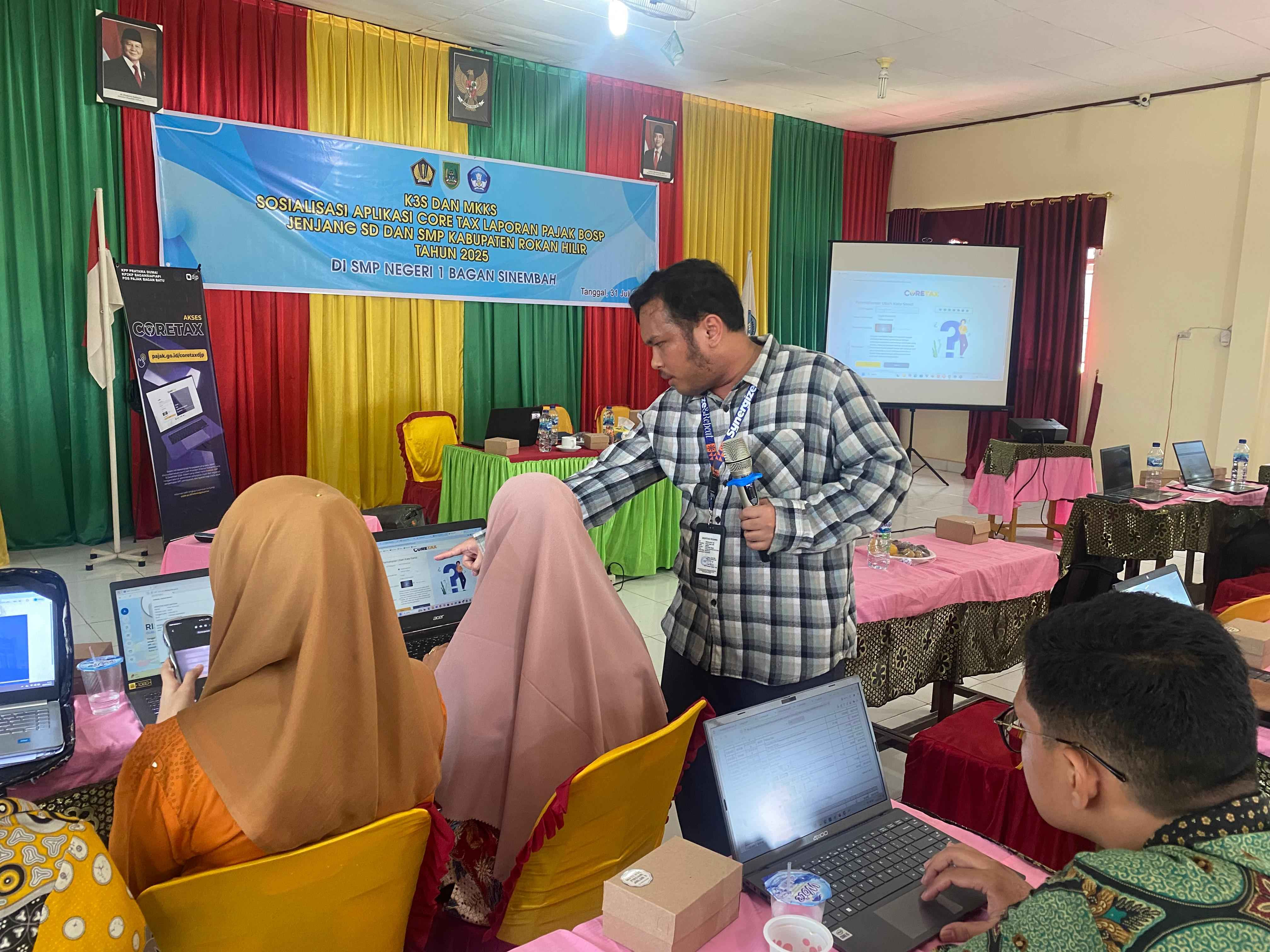 Kegiatan yang menghadirkan tim penyuluh pajak dari KP2KP Bagansiapiapi sebagai narasumber kegiatan ini bertujuan untuk memberikan pemahaman kepada peserta kegiatan sosialisasi, yaitu bendahara SD dan SMP, mengenai penggunaan aplikasi Coretax DJP.