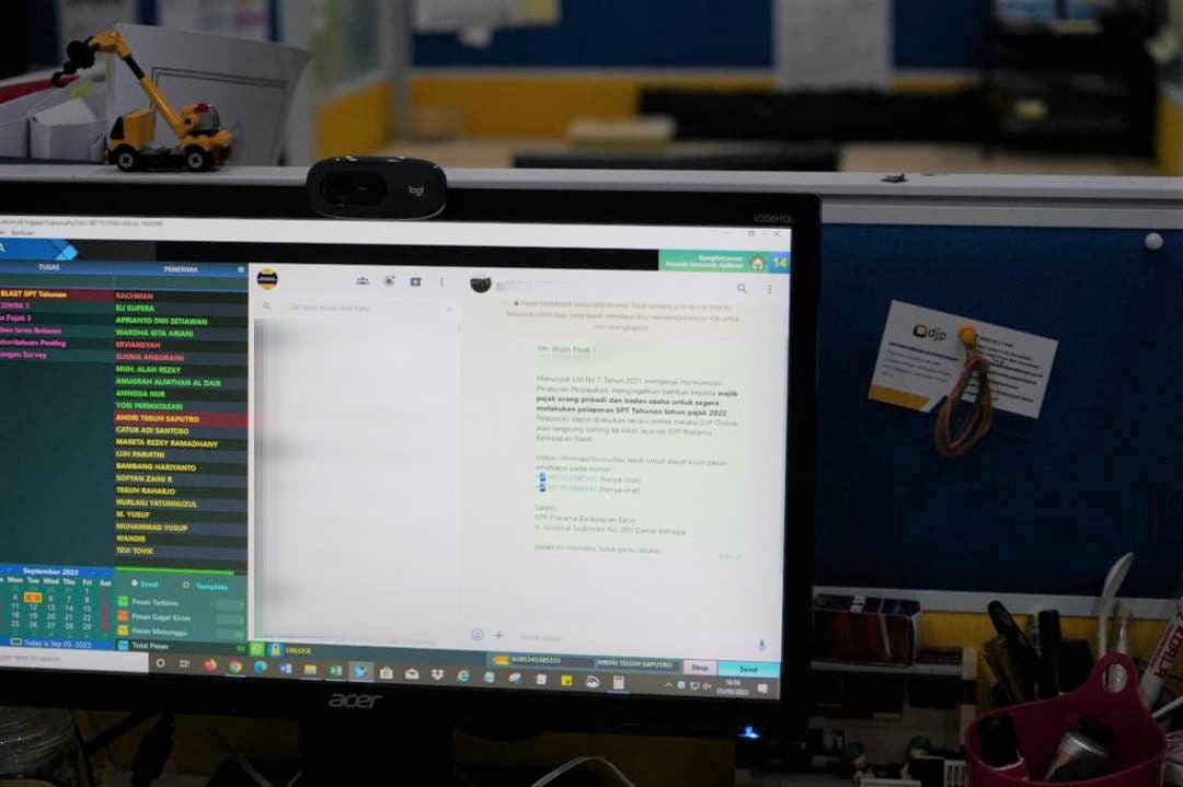 “Tujuan pengiriman Whatsapp Blast ini adalah untuk meningkatkan kepatuhan melalui imbauan pelaporan SPT Tahunan sekaligus memberikan edukasi perpajakan kepada wajib pajak melalui informasi tenggat pajak,” terang Sjam Mudjahadah Bukasim, Kepala Seksi Pelayanan KPP Pratama Balikpapan Barat.