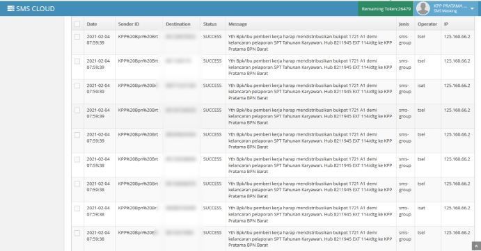Nantinya, bukti potong tersebut berfungsi sebagai kredit pajak sehingga menjadi dasar bagi Wajib Pajak Orang Pribadi Karyawan untuk melakukan pelaporan SPT Tahunan. “Pengiriman SMS Masking ini bertujuan untuk menindaklanjuti pembentukan satuan petugas peningkatan kepatuhan pelaporan SPT Tahunan PPh yang dilaporkan tahun 2021,” tambahnya