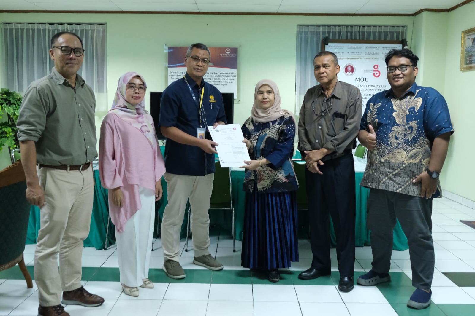 Kepala Seksi Kerja Sama dan Hubungan Masyarakat Kanwil DJP Banten, Satriyono Sejati, menyerahkan dokumen yang telah ditandatangani oleh kedua belah pihak.