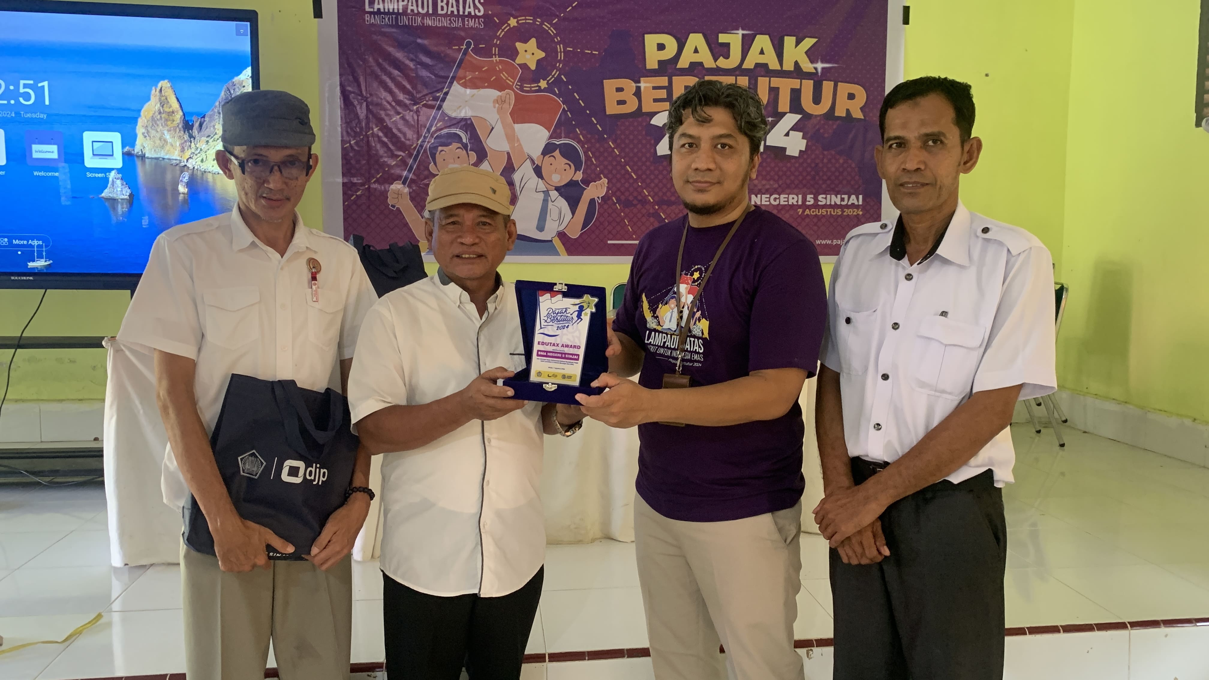 Kantor Pelayanan, Penyuluhan, dan Konsultasi Perpajakan (KP2KP) Sinjai melakukan edukasi perpajakan dengan menyelenggarakan Pajak Bertutur 2024 di Sekolah Menengah Atas (SMA) Negeri 5 Sinjai (Rabu, 7/8). Kegiatan ini diikuti secara antusias oleh 30 siswa yang juga dihadiri oleh Kepala Sekolah SMA Negeri 5 Sinjai, Darsam dan Wakil Kepala Sekolah H.Aribe.
