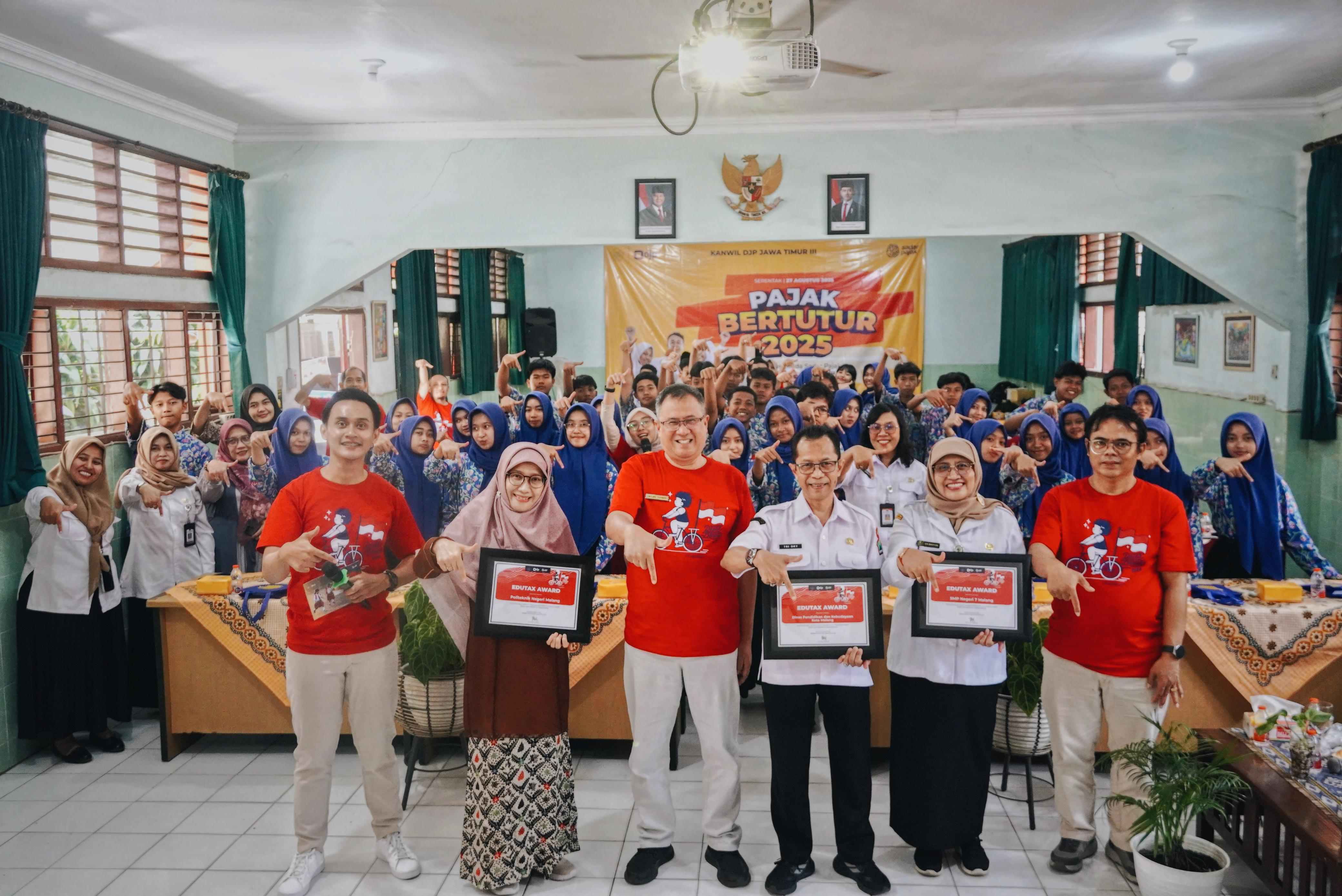 Kantor Wilayah (Kanwil) Direktorat Jenderal Pajak (DJP) Jawa Timur III menyelenggarakan kegiatan Pajak Bertutur 2025 dengan melibatkan 40 siswa kelas IX di Sekolah Menengah Pertama Negeri (SMPN) 7 Kota Malang (Rabu, 27/8). Acara ini berlangsung serentak di seluruh Indonesia dan dihadiri langsung secara daring oleh Direktur Jenderal Pajak.