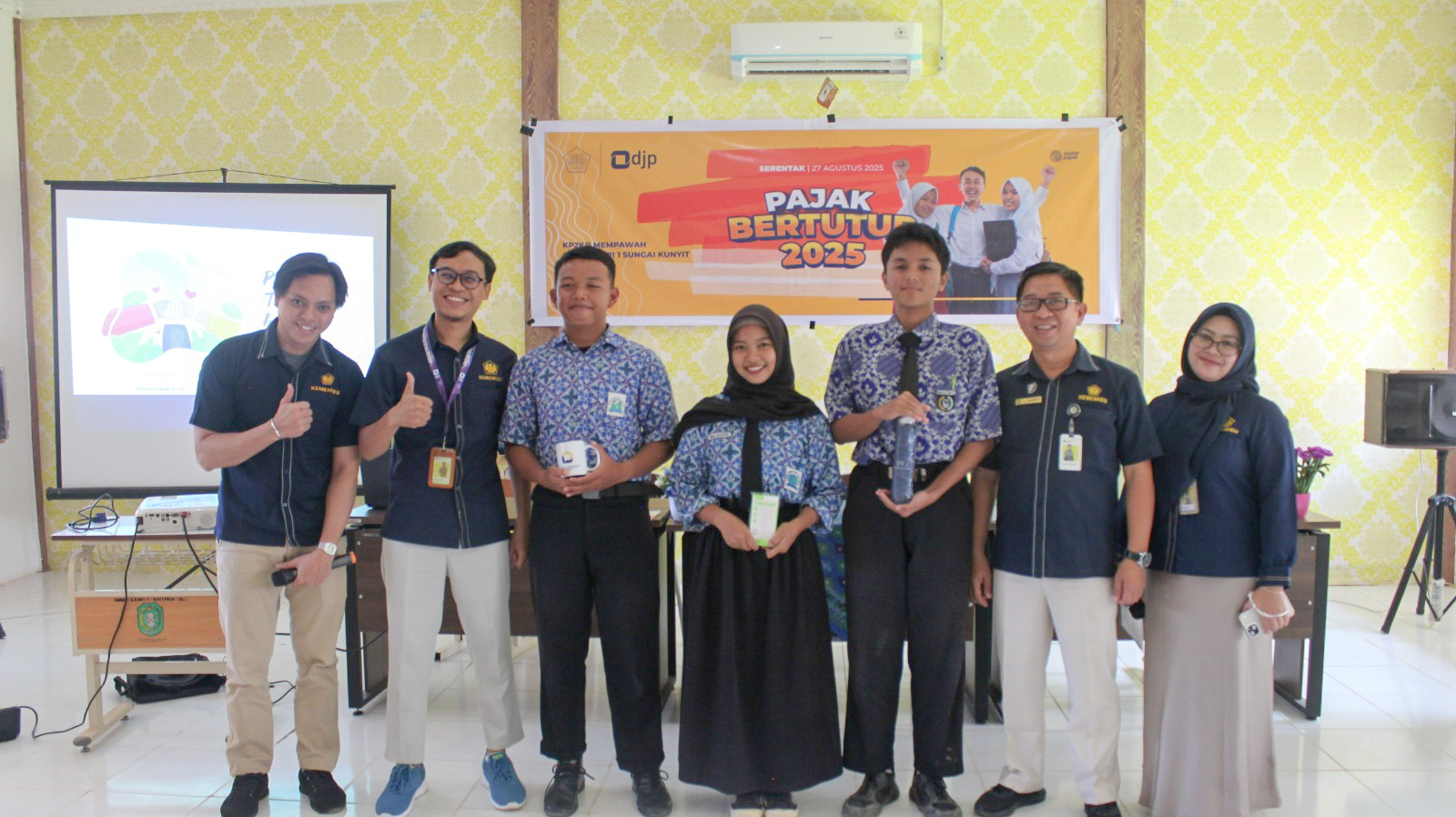 “Tujuan dari kegiatan pajak bertutur 2025 adalah untuk mengenalkan apa itu pajak, manfaat pajak untuk apa saja, dan apa yang harus dilakukan sebagai generasi muda di masa sekarang. Bisa jadi di masa mendatang, ada lulusan SMKN 1 Sungai Kunyit menggantikan posisi saya sebagai Kepala KP2KP, ada yang jadi pengusaha, ASN dan lain-lain. Apa pun profesinya di masa depan, penting untuk mengetahui arti penting pajak untuk keberlangsungan NKRI,” tutur Kepala KP2KP Mempawah, Ahmad Zakariya.