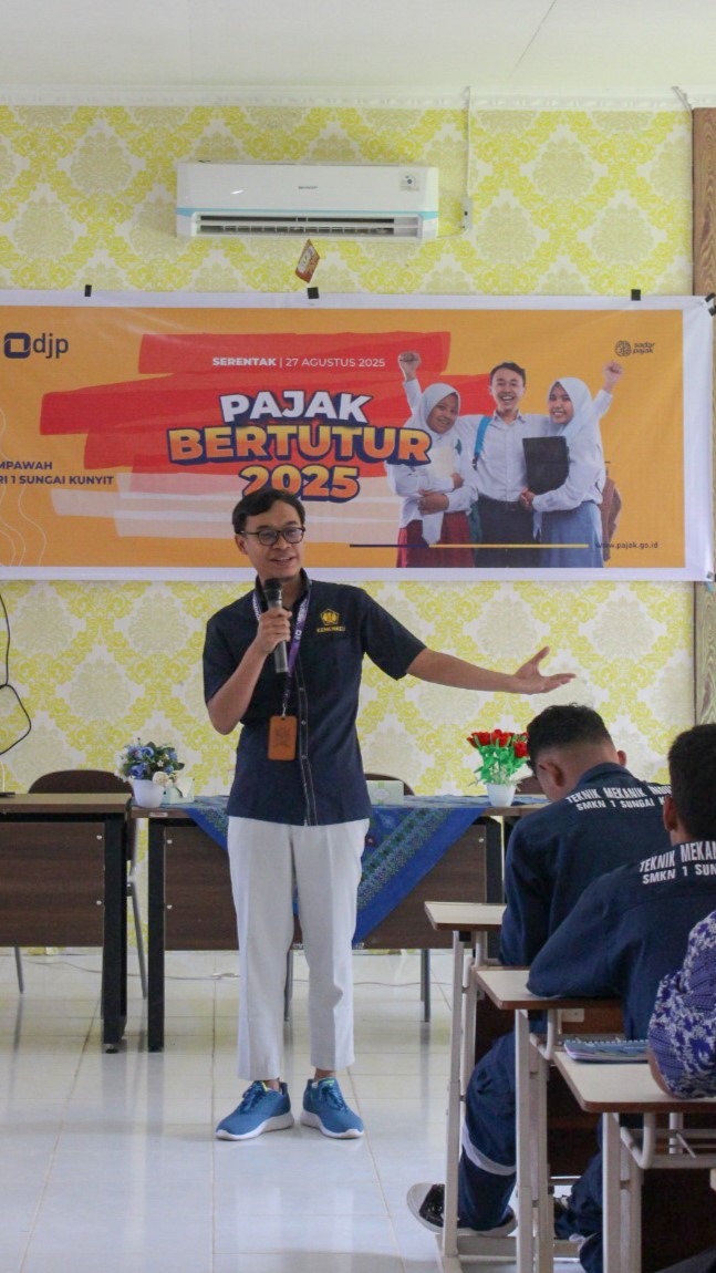 Mengusung tema “Generasi Muda Sadar Pajak untuk Indonesia Maju” dan tagline “Pajak Bertutur 2025: Sehari Mengenal Selamanya Bangga”, Pajak Bertutur di SMKN 1 Sungai Kunyit dihadiri oleh 30 perwakilan siswa dari seluruh jurusan.