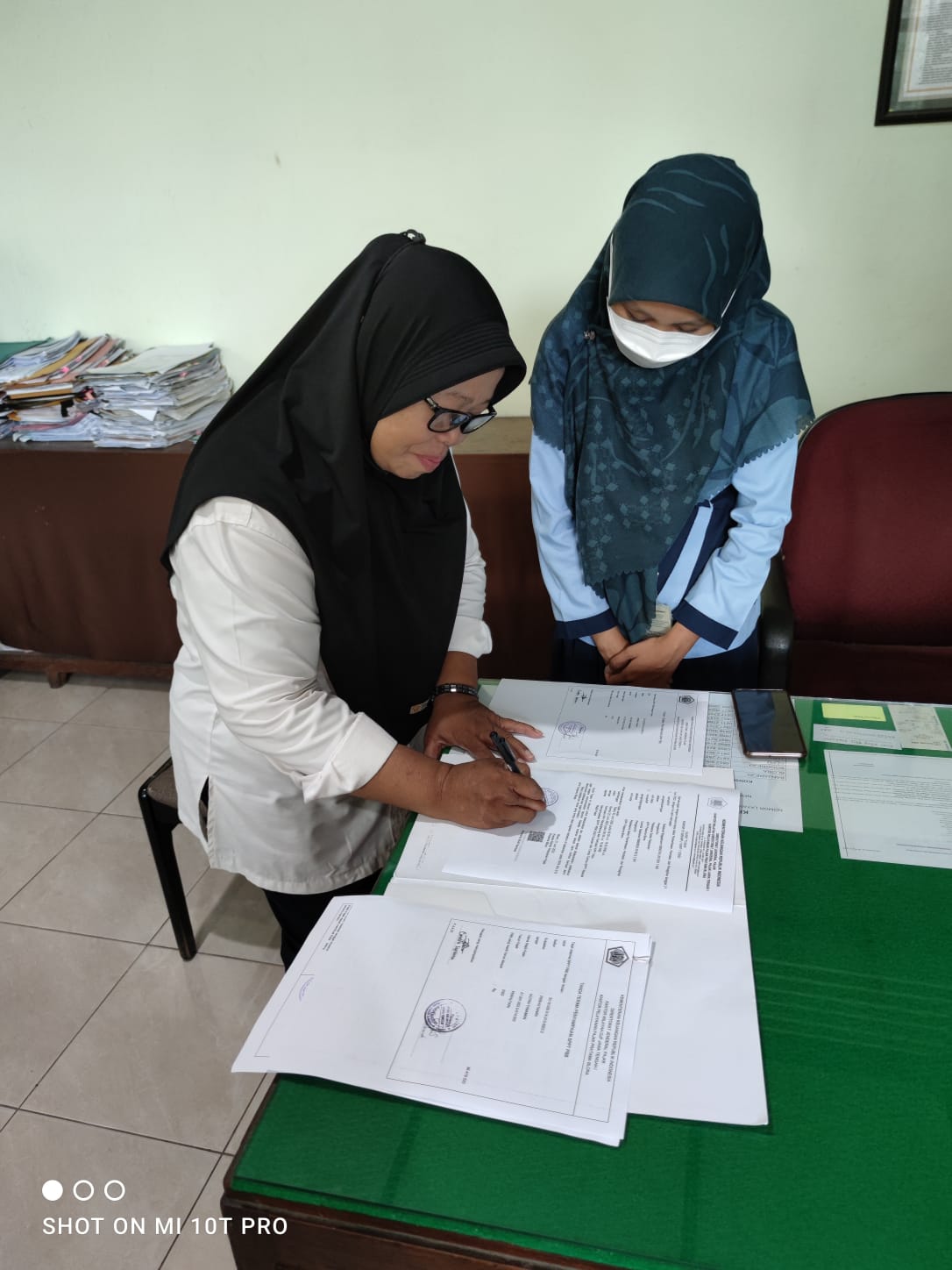 Petugas Penilai Kantor Pelayanan Pajak (KPP) Pratama Blora menyampaiakan Surat Pemberitahuan Pajak Terhutang (SPPT) Pajak Bumi Bangunan (PBB) Tahun 2022 kepada Staff Keuangan Perum Perhutani Kesatuan Pemangku Hutan (KPH) Randublatung, Blora ( Rabu, 22/6)