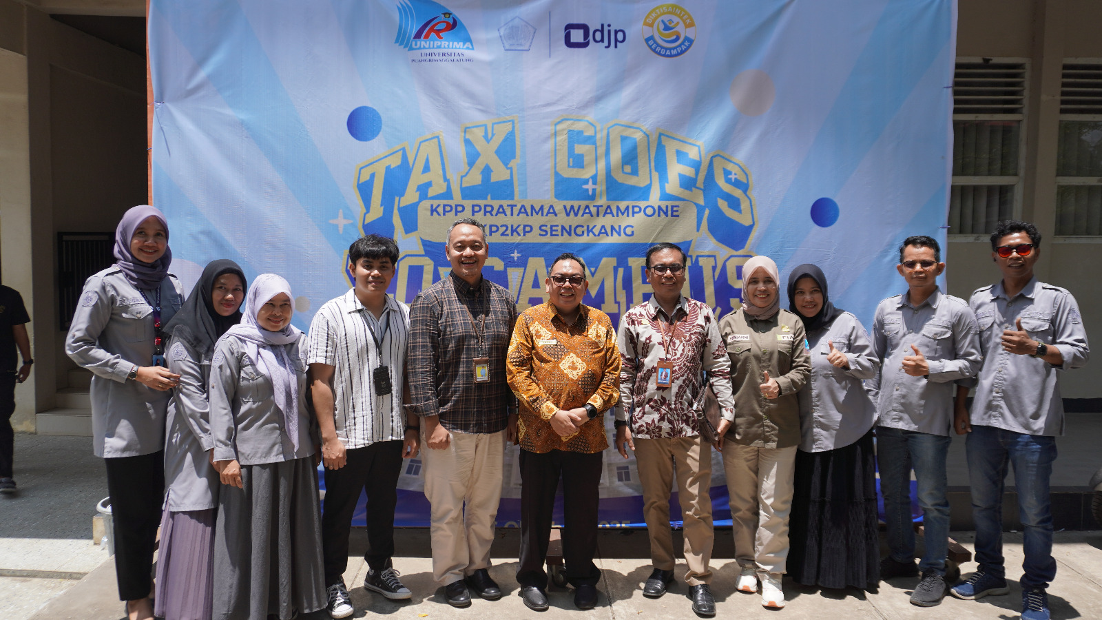 Kantor Pelayanan Pajak (KPP) Pratama Watampone bersama Kantor Pelayanan, Penyuluhan, dan Konsultasi Perpajakan (KP2KP) Sengkang menjalin kerja sama strategis dengan Universitas Puangrimaggalatung (Uniprima) melalui kegiatan penandatanganan Memorandum of Understanding (MoU) pembentukan tax center, penyerahan Piagam Wajib Pajak, pelaksanaan program Tax Goes to Campus (TGTC), serta kuliah umum perpajakan.