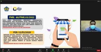 Topik yang dibahas kali ini yaitu Peraturan Menteri Keuangan (PMK) Nomor 60/PMK.03/2022 tentang Tata Cara Penunjukan Pemungut, Pemungutan, Penyetoran, dan Pelaporan PPN atas Pemanfaatan Barang Kena Pajak (BKP) Tidak Berwujud dan/atau Jasa Kena Pajak (JKP) dari Luar Daerah Pabean di dalam Daerah Pabean Melalui Perdagangan Melalui Sistem Elektronik (PMSE).