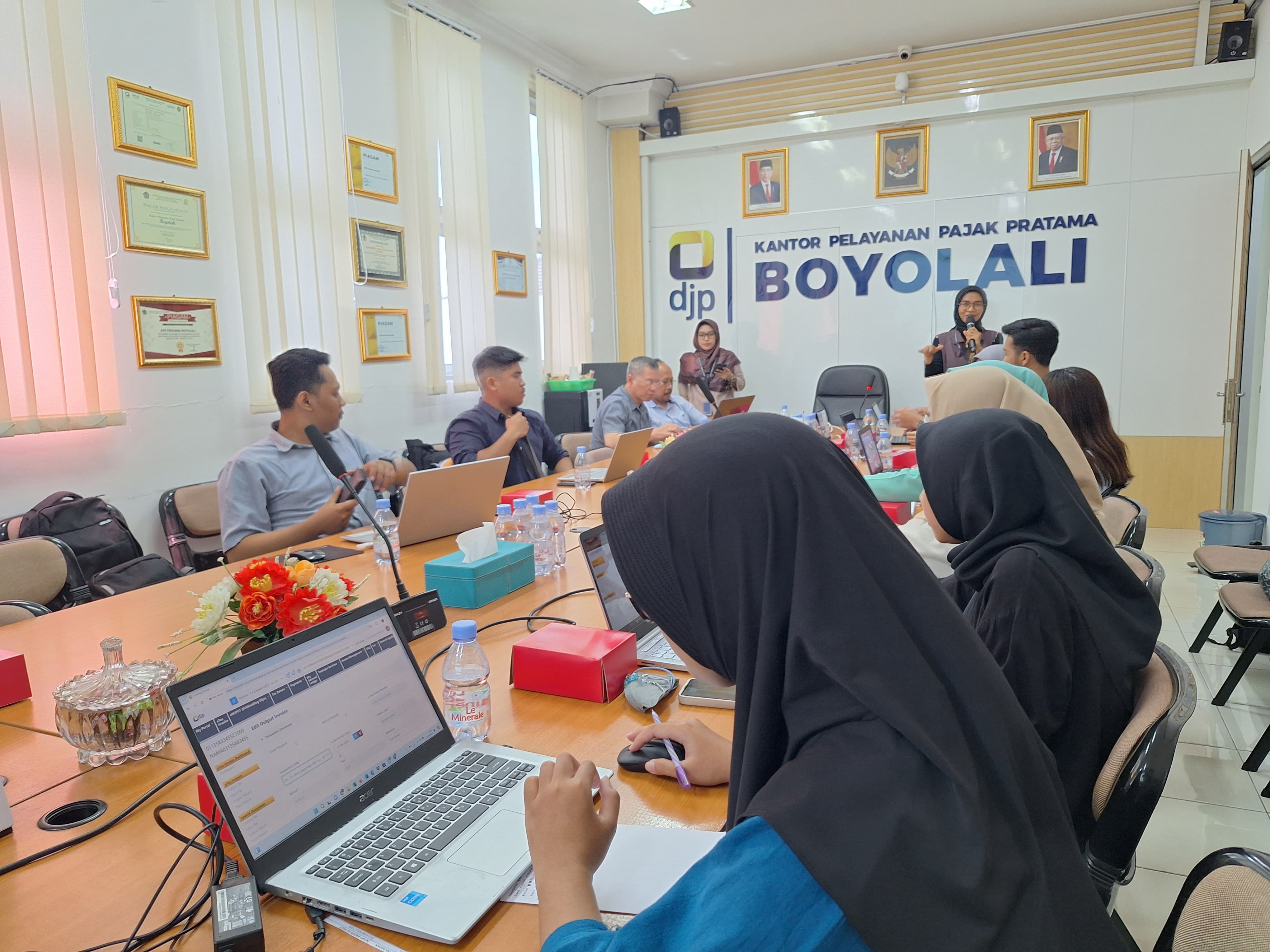 "Bersiaplah untuk layanan pajak yang lebih cepat dan mudah dengan Coretax," ungkap Kepala Kantor Pelayanan Pajak (KPP) Pratama Boyolali, Irawan dalam sambutannya pada akhir kegiatan edukasi Coretax (Kamis, 26/9). KPP Pratama Boyolali menyampaikan informasi terbaru mengenai Core Tax Administration System (CTAS) atau Pembaruan Sistem Inti Administrasi Perpajakan (PSIAP) melalui kegiatan edukasi kepada wajib pajak. Kegiatan yang dilaksanakan di Aula Lantai 2 KPP Pratama Boyolali ini merupakan kegiatan edukasi aplikasi Coretax tahap 1, yang dimulai pada tanggal 27 Agustus 2024 sampai dengan akhir September 2024.