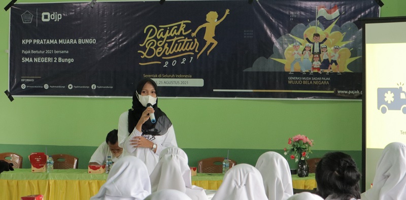 Kantor Pelayanan Pajak (KPP) Pratama Muara Bungo mengadakan Program Inklusi Kesadaran Pajak dalam pendidikan melalui kegiatan Pajak Bertutur 2021 di SMA Negeri 2 Bungo, Kabupaten Bungo (Rabu, 25/8).