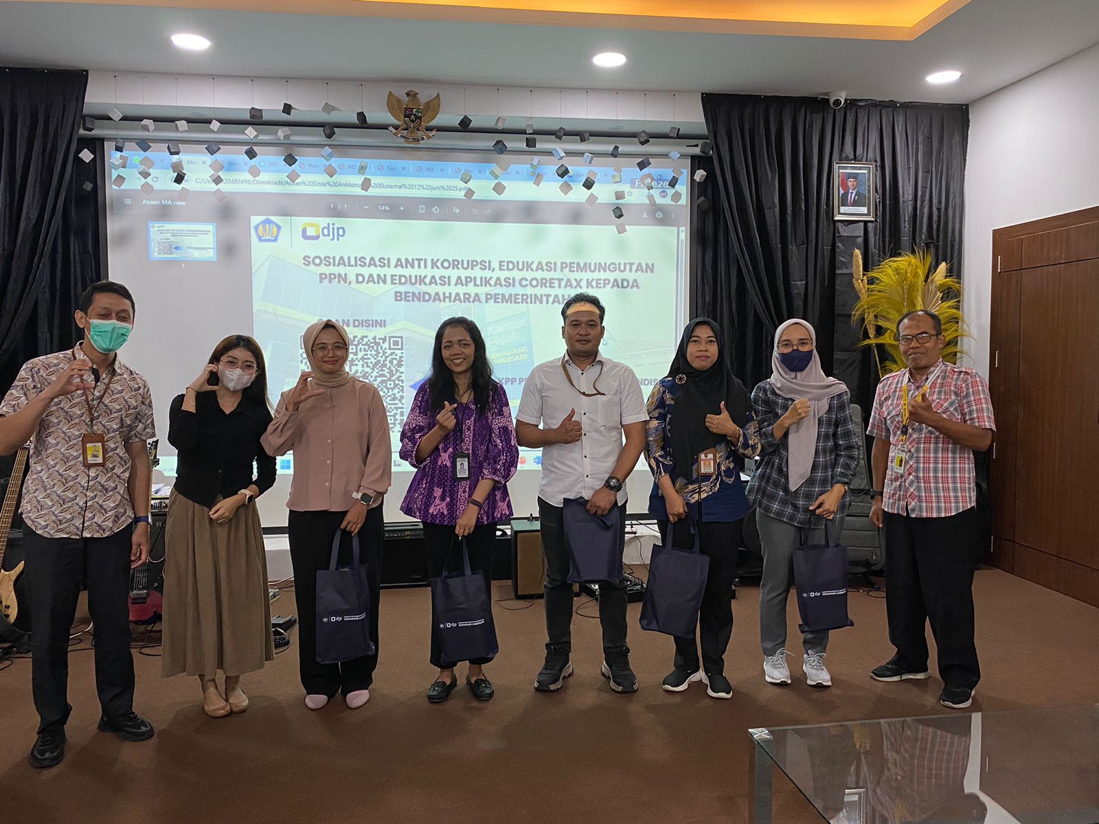 Setelah materi refreshment atau penyegaran kewajiban perpajakan bendahara selesai, dilanjutkan sesi tanya jawab untuk berdiskusi terkait pelaksanaan implementasi Coretax yang sudah berjalan selama 6 bulan ini.