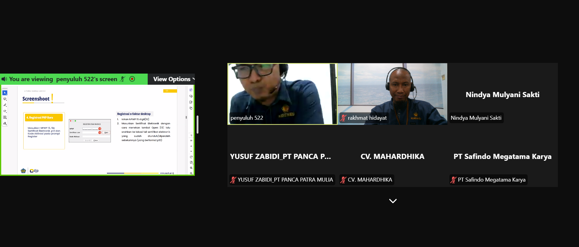 Kegiatan edukasi ini diikuti oleh 13 Wajib Pajak Badan Pengusaha Kena Pajak (PKP). Muhamad Najib Amrullah dan Rakhmat Hidayat, Penyuluh Pajak KPP Pratama Cilacap menyampaikan materi e-Faktur secara rinci. Dalam sesi pemaparan materi disampaikan tata cara install Aplikasi e-Faktur serta pembaruan aplikasi efaktur 4.0. Narasumber juga membahas pentingnya kepemilikan akun Sertifikat Elektronik yang masih aktif untuk digunakan pada proses pelaporan SPT Masa PPN, khususnya pada laman e-faktur.