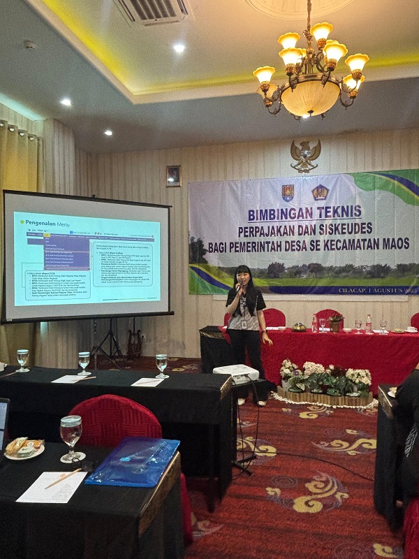 Kantor Pelayanan Pajak (KPP) Pratama Cilacap menghadiri kegiatan Bimbingan Teknis (Bimtek) Kewajiban Perpajakan bagi Instansi Pemerintah Desa melalui Coretax kepada bendahara desa se-Kecamatan Maos, Kabupaten Cilacap. Kegiatan ini bertempat di Ruang Surtikanti Lantai 5 Hotel Sindoro, Kabupaten Cilacap (Jumat, 1/8).