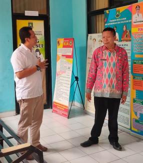 Penyuluh Pajak Ahli Muda Kantor Pelayanan Pajak (KPP) Pratama Cilegon Mawan Triantana berbincang dengan sekretaris camat di Kota Cilegon untuk membuka Pojok Pajak di kantor-kantor kecamatan se-Kota Cilegon secara bergiliran.