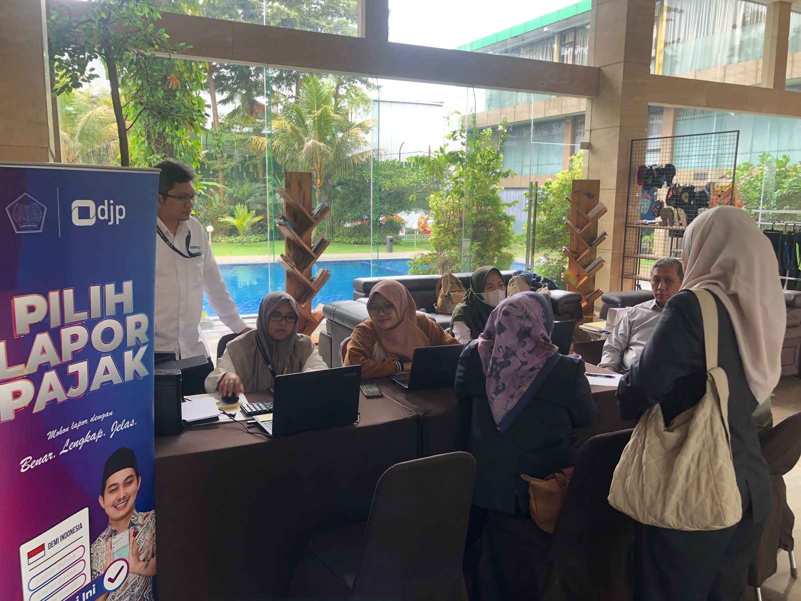 Kegiatan pelayanan berjalan sebelum agenda rapat paripurna dimulai, yaitu mulai pukul 14.00 hingga 16.00 WIB. Tampak para wajib pajak telah mempersiapkan data harta, penghasilan, dan kewajiban untuk dilaporkan di SPT Tahunan Orang Pribadi masing-masing.