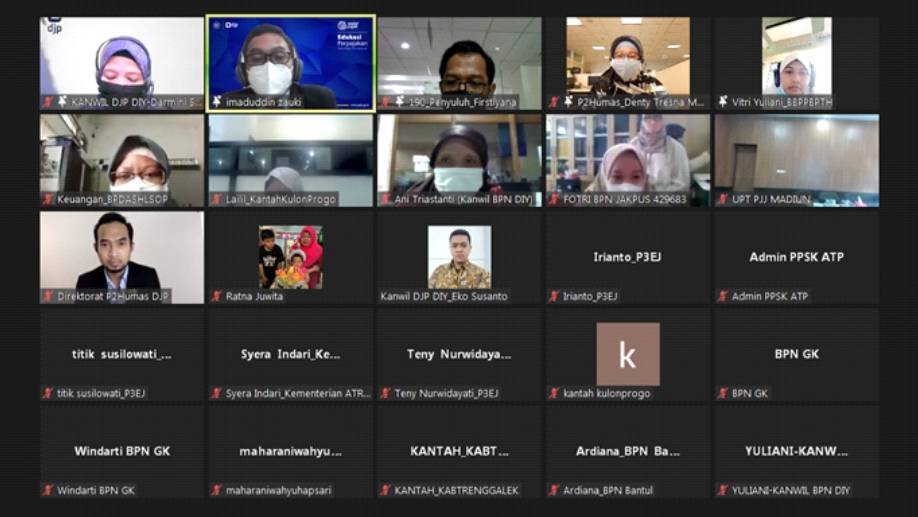 Kantor Pusat Direktorat Jenderal Pajak bekerja sama dengan Kanwil DJP D.I. Yogyakarta menyelenggarakan kelas pajak kepada bendahara seluruh instansi pemerintah di bawah lingkungan Kementerian ATR/BPN dan Kementerian Lingkungan Hidup dan Kehutanan (KLHK) di wilayah D.I. Yogyakarta (Rabu, 1/9).