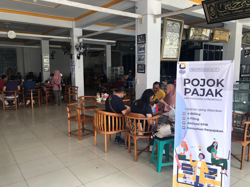 Kantor Pelayanan Pajak (KPP) Pratama Gorontalo kembali mengadakan pojok pajak di Warung Kopi (Warkop) Amal Gorontalo Jalan Samratulangi, Limba U Dua, Kota Selatan, Kota Gorontalo (Minggu, 7/3). Kepala KPP Pratama Gorontalo Suyono mengungkapkan, dipilihnya warung kopi ini karena tempat ini selalu dipenuhi pengunjung dari berbagai profesi.