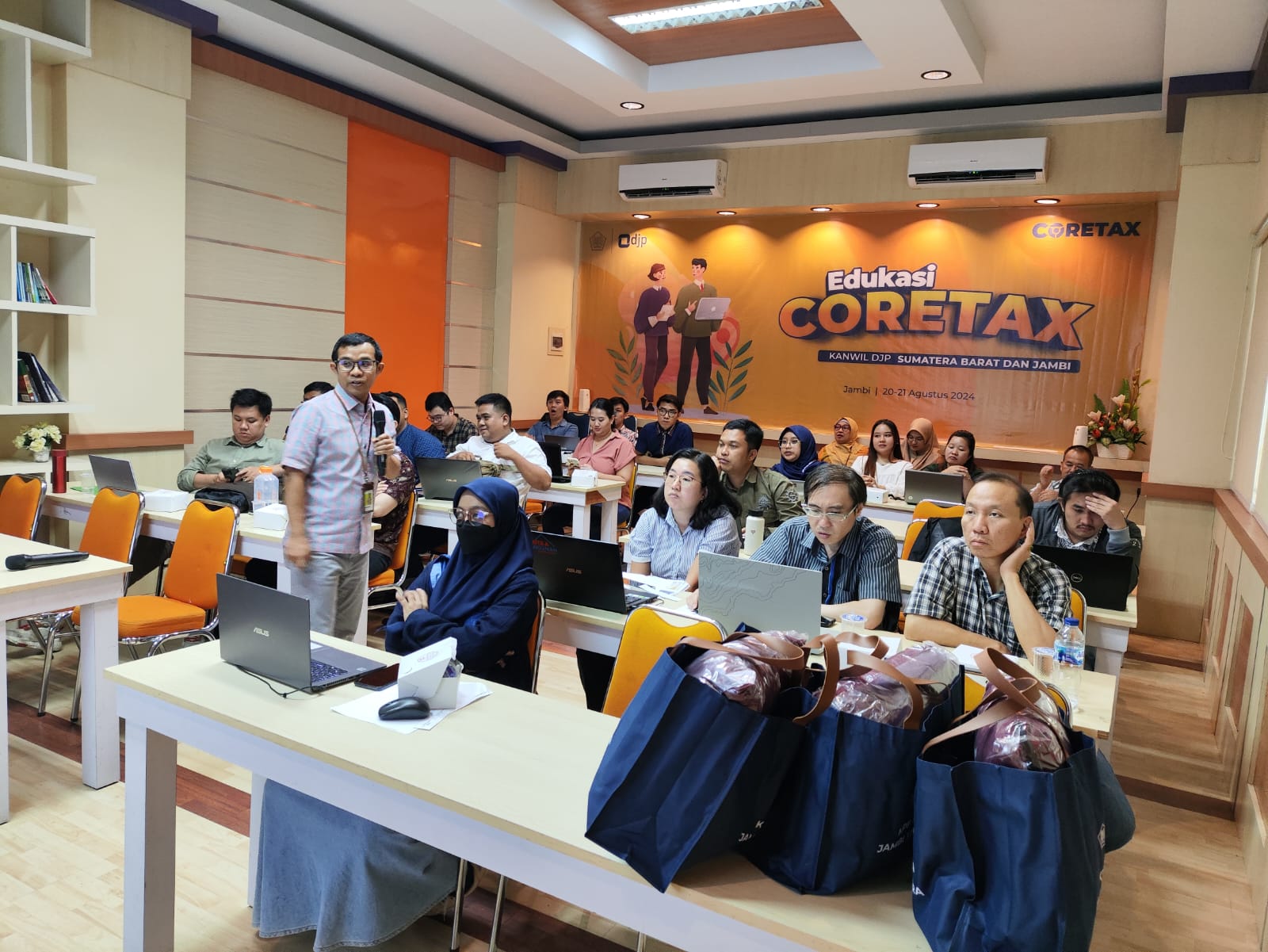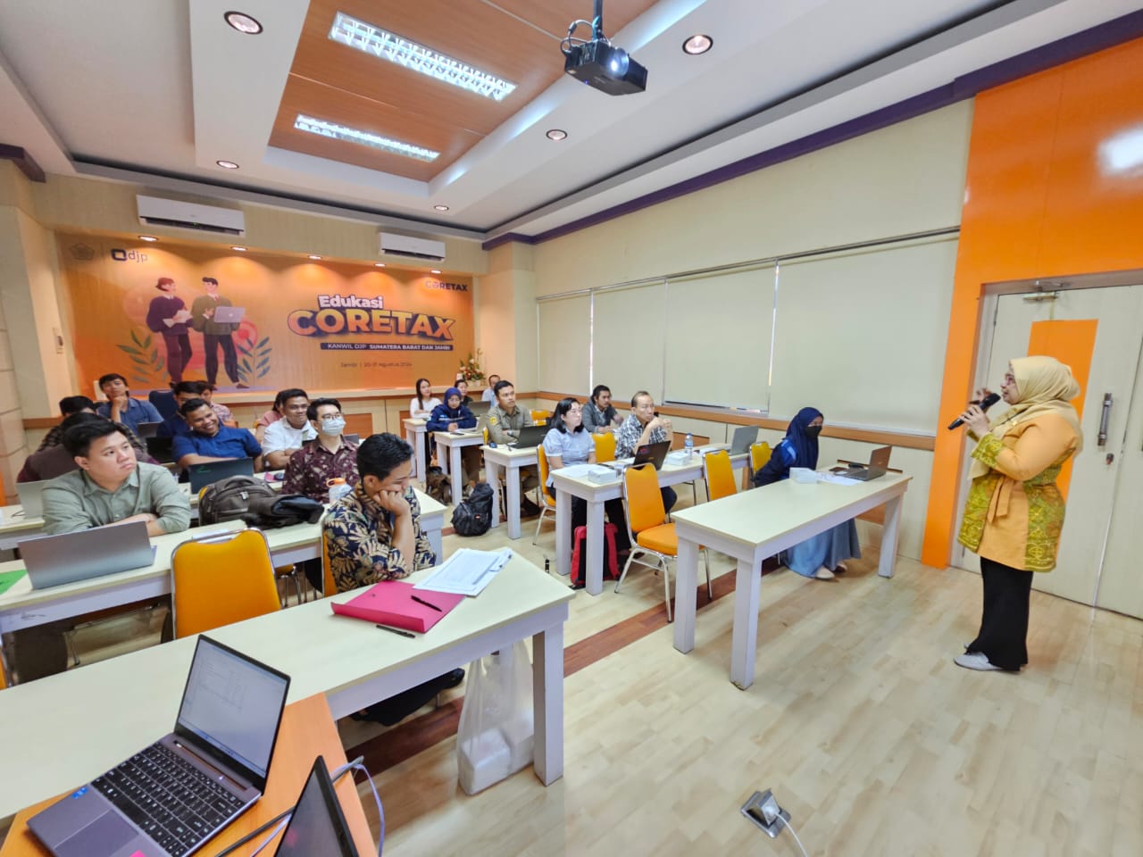 Kantor Pelayanan Pajak (KPP) Pratama Jambi Telanaipura menjadi tuan rumah kegiatan edukasi Coretax yang diselenggarakan oleh Kantor Wilayah Direktorat Jenderal Pajak (Kanwil DJP) Sumatera Barat dan Jambi (Selasa, 20/8). Kegiatan ini dihadiri oleh Wajib Pajak yang terdaftar di KPP Pratama Jambi Telanaipura dan berlangsung di ruang kelas pajak KPP tersebut dari pukul 09.00 sampai dengan 16.00 WIB.