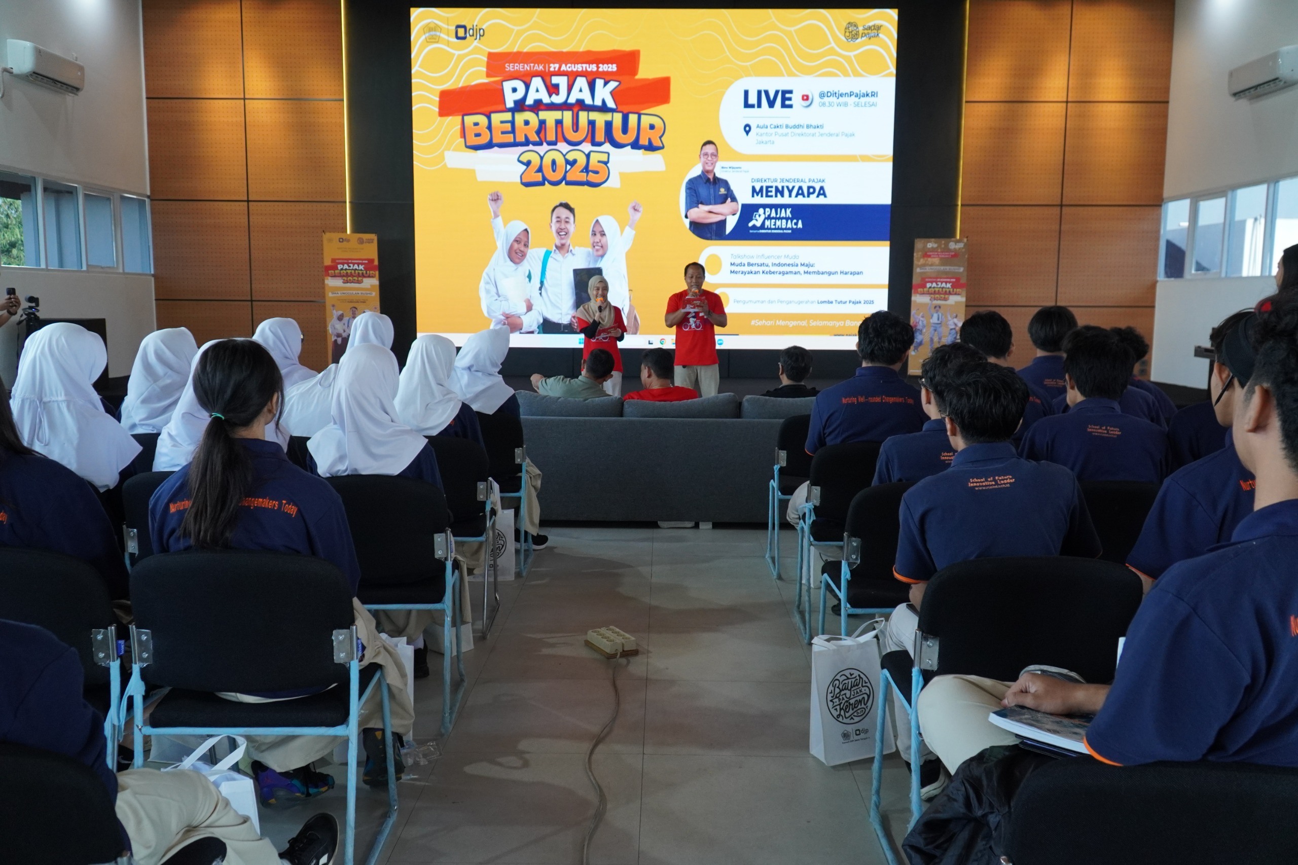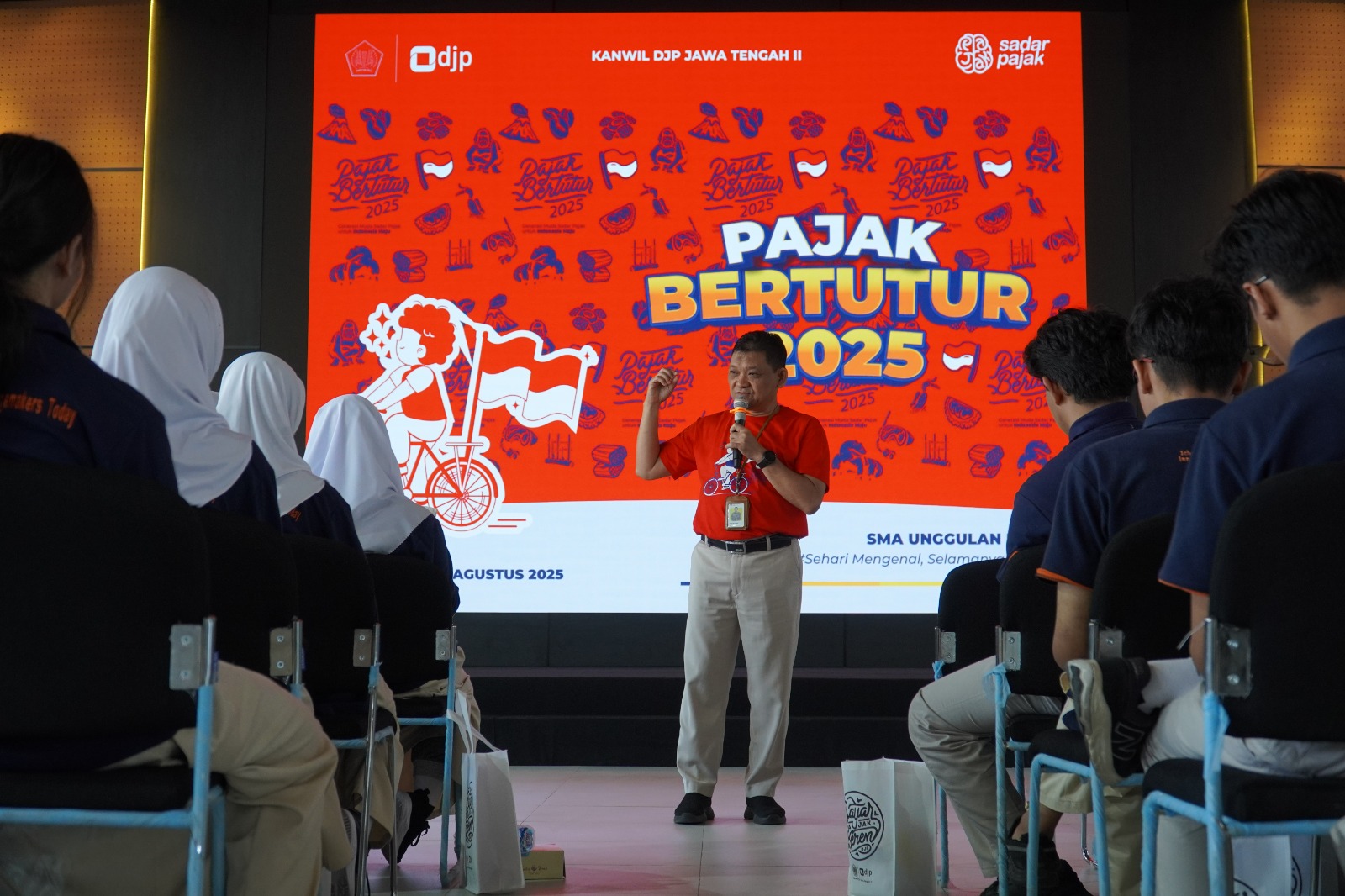 Kantor Wilayah Direktorat Jenderal Pajak (Kanwil DJP) Jawa Tengah II menggelar kegiatan Pajak Bertutur 2025 di SMA Unggulan Rushd, Kabupaten Sragen (Rabu, 27/8). Kegiatan yang mengusung tema "Generasi Muda Sadar Pajak untuk Indonesia Maju" ini merupakan sebuah program edukasi nasional yang bertujuan untuk menanamkan nilai-nilai kesadaran pajak sejak dini kepada generasi muda