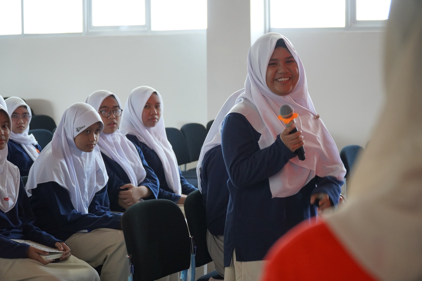 Kegiatan berlangsung dengan suasana interaktif dan penuh antusiasme dari siswa-siswi. Materi edukasi disampaikan melalui pendekatan ringan dan komunikatif, meliputi peran pajak dalam APBN, manfaat pajak bagi masyarakat, serta pentingnya partisipasi aktif dalam pembangunan. Program dikemas melalui tiga metode utama yakni penyampaian materi, games interaktif, dan sesi tanya jawab langsung antara pemateri dan peserta. Sesi tanya jawab juga berlangsung dinamis dengan berbagai pertanyaan kritis dari siswa tentang peran pajak dalam pembangunan nasional.